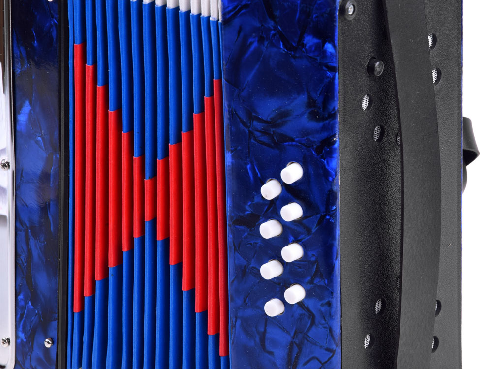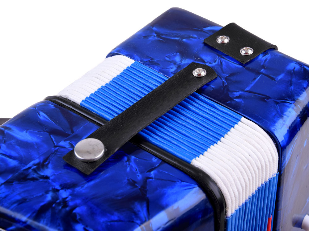 The accordion is designed for curious and brave children who love music in all its forms. The children's accordion looks like a real musical instrument, develops the child's motor skills, influences musical perception, and the ability to distinguish sounds. The principle is the same as with a real accordion - to produce sound, you need to expand and compress the bellows. In addition, the accordion has keys and bass buttons. The handle and leather shoulder strap make it easy and safe to hold the accordion. The bellows clip protects the toy from damage when not in use. A carefully and aesthetically crafted tool can inspire a child to further learning. Music has always accompanied us at work, during entertainment, and in our free time.