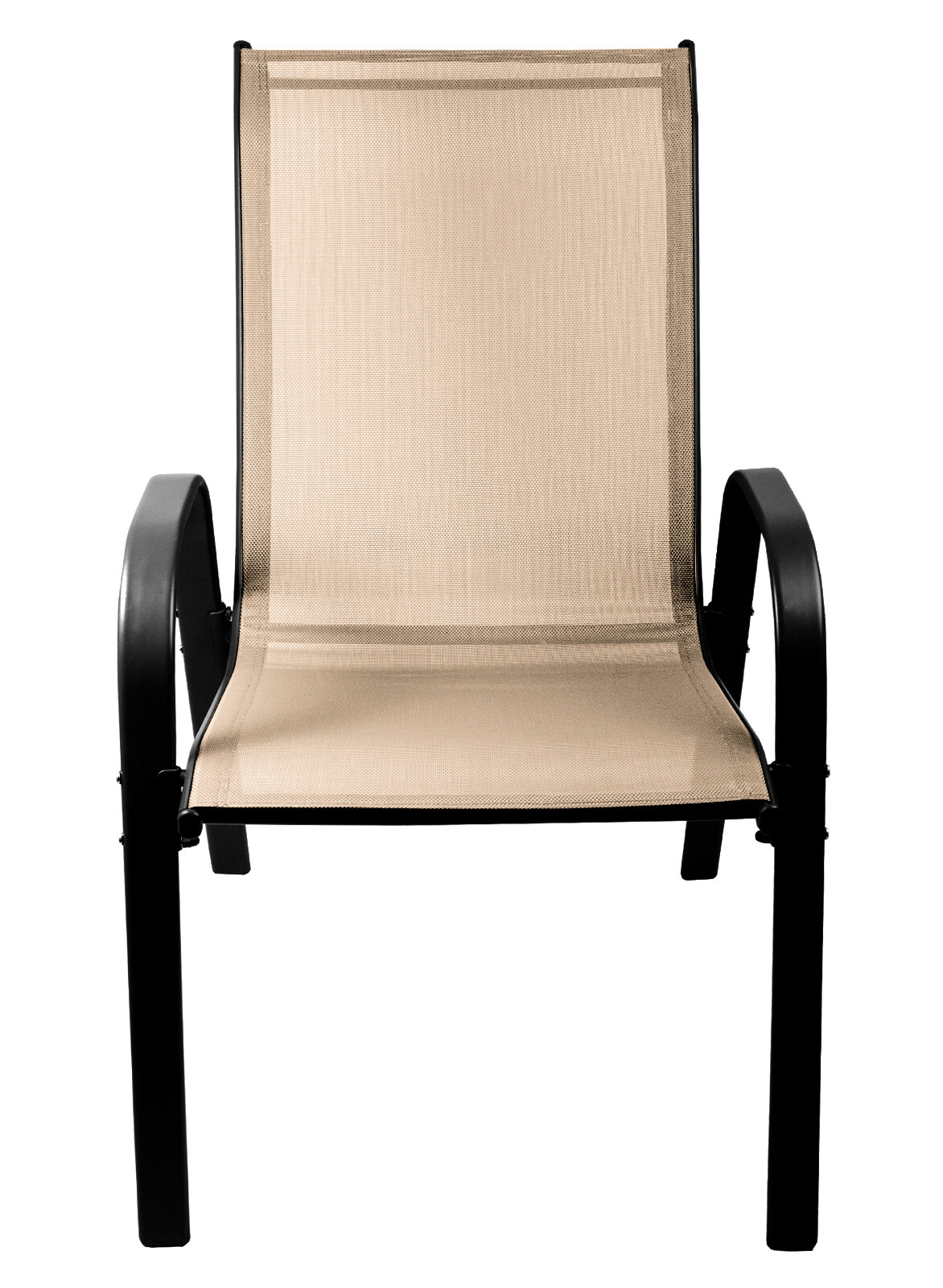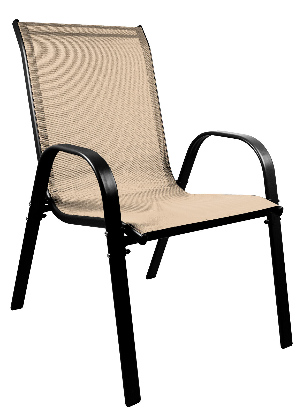 The chair is comfortable, has a stable construction that does not rust, and a sturdy textile cover that is water-resistant.