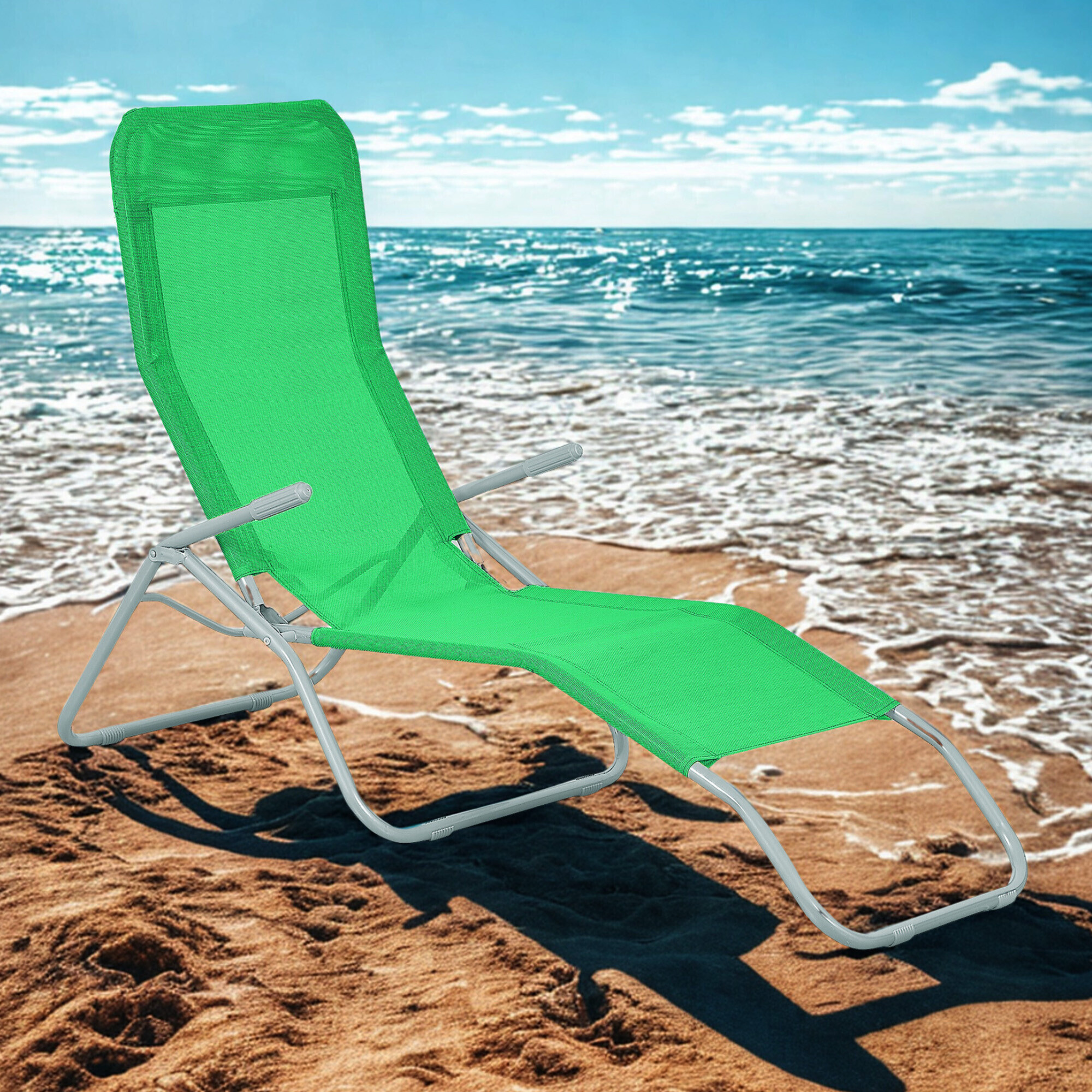 A simple mechanism allows the lounger to be folded quickly and easily.