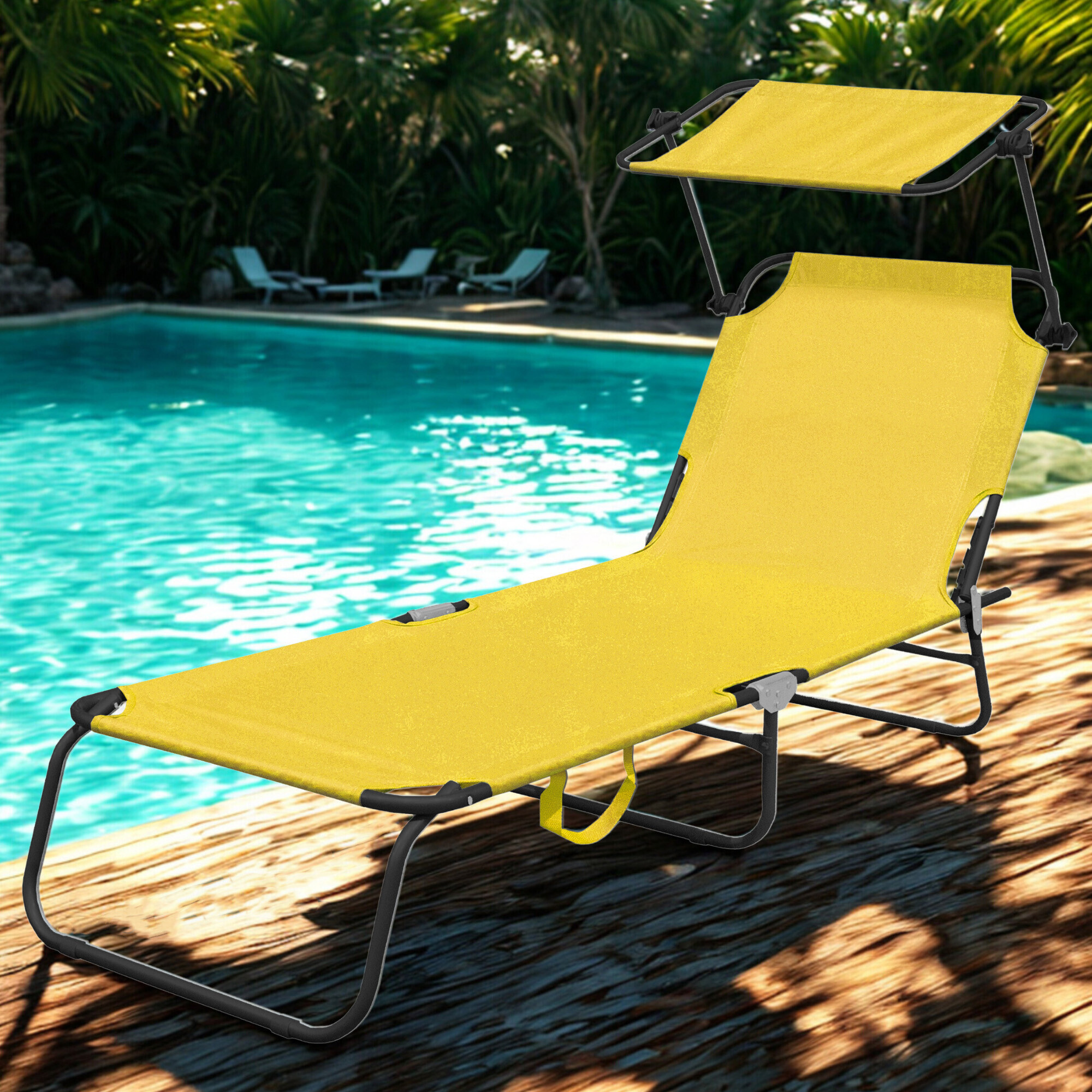 The lounger includes a removable canopy that can be adjusted as desired and protects the face from harsh sunlight.The backrest of the lounger can be adjusted to 4 different positions.