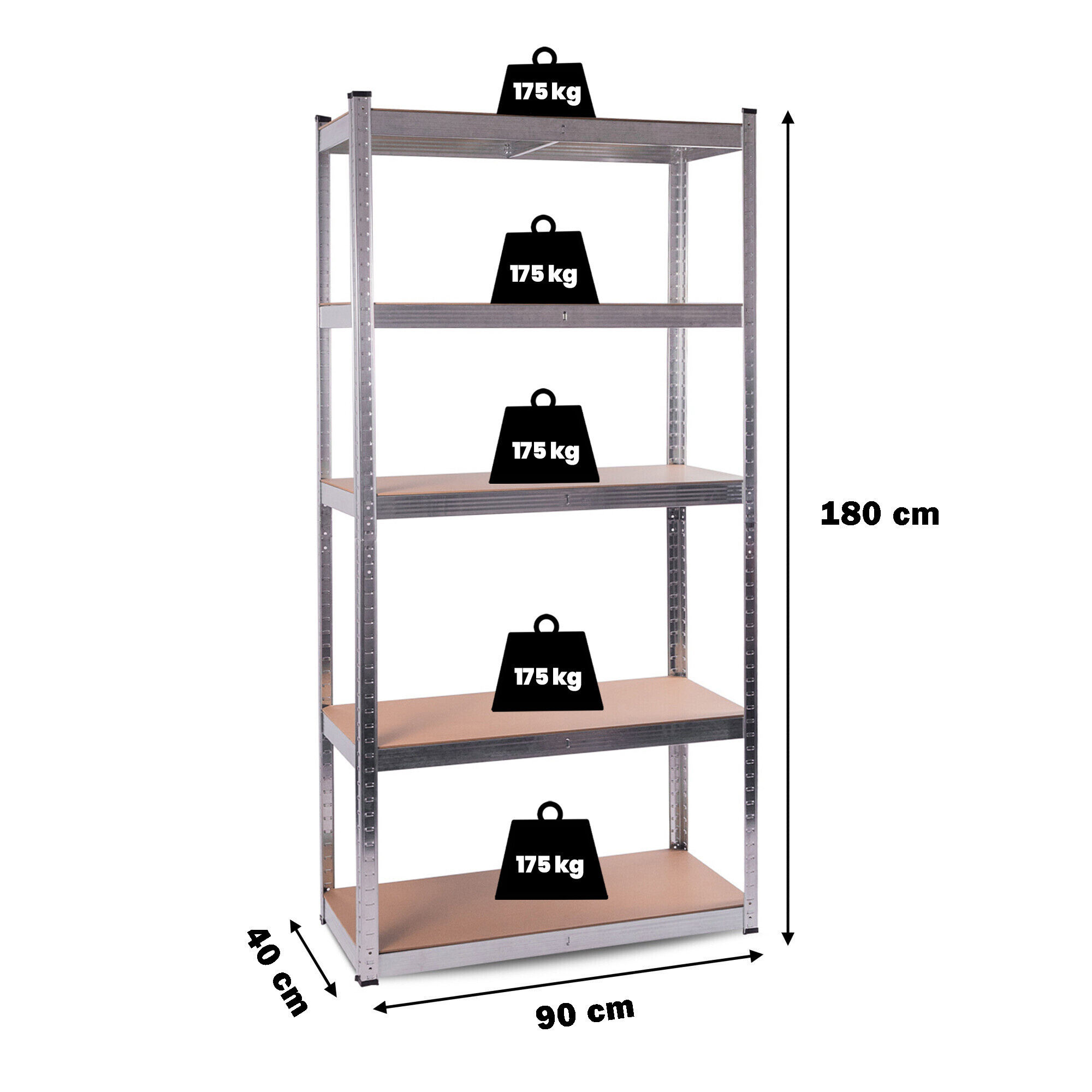 The frame made of galvanized steel in silver color ensures stability and a high load capacity of approximately 875 kg (each shelf can hold approximately 175 kg).Whether in the pantry or the workshop - with this practical helper, you can store not only food supplies and drinks but also tools!