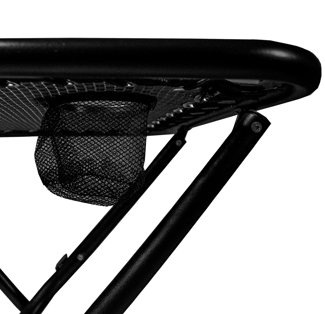The table surface itself, at a height of 50 cm, is equipped with two drink holders.