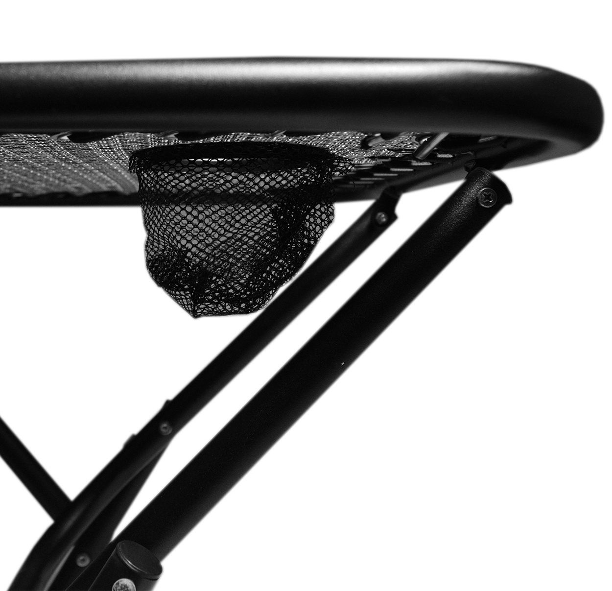 The table surface itself, at a height of 50 cm, is equipped with two drink holders.