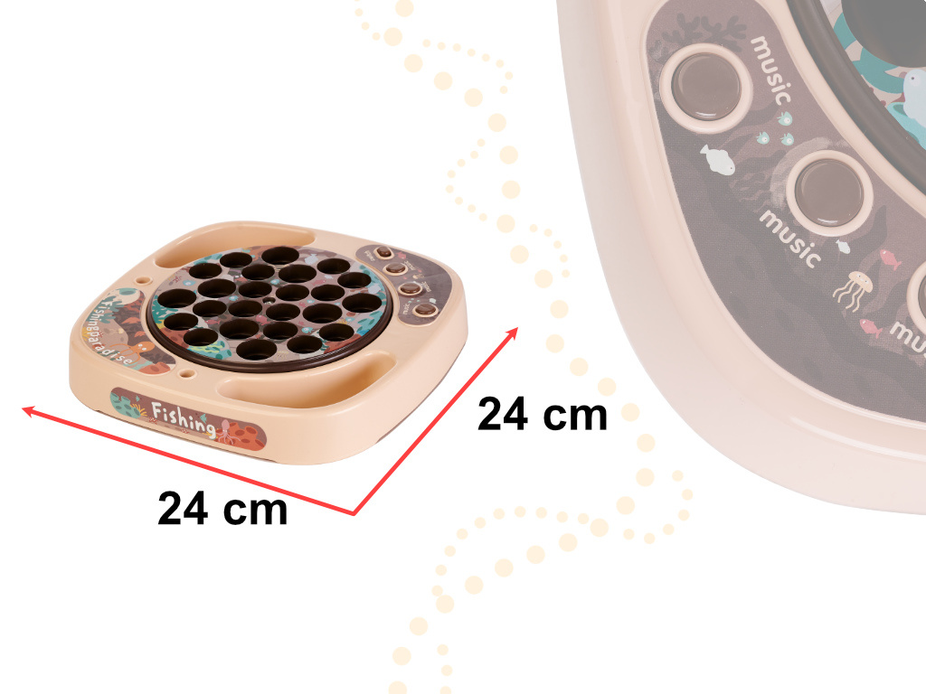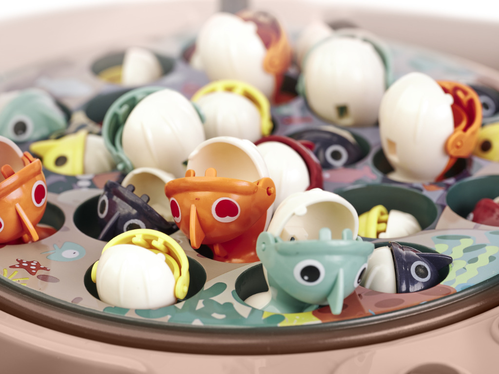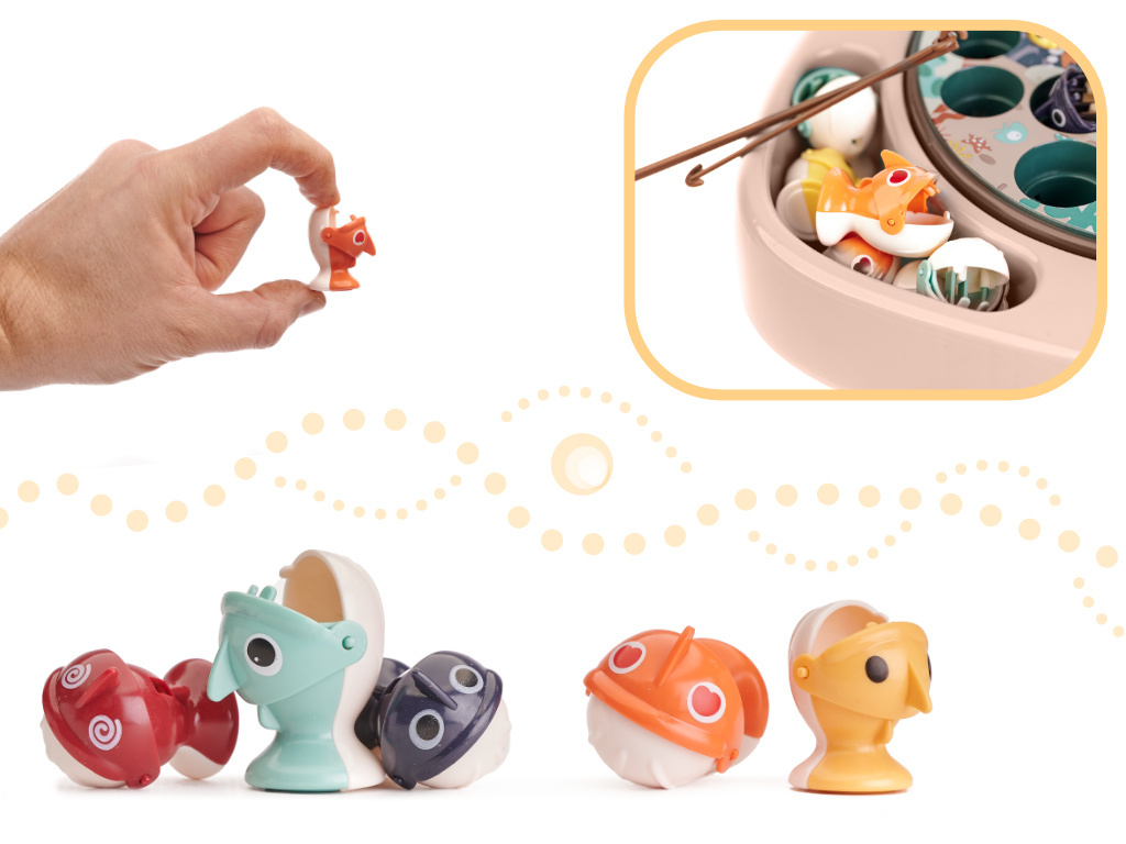 - The colorful containers for caught fish are removable.