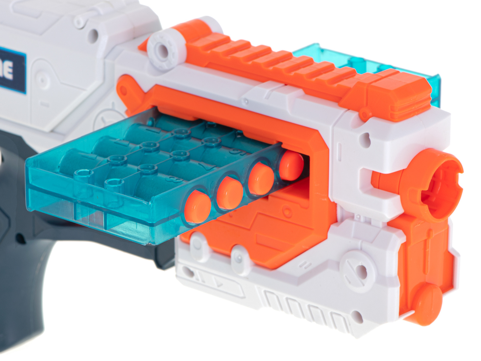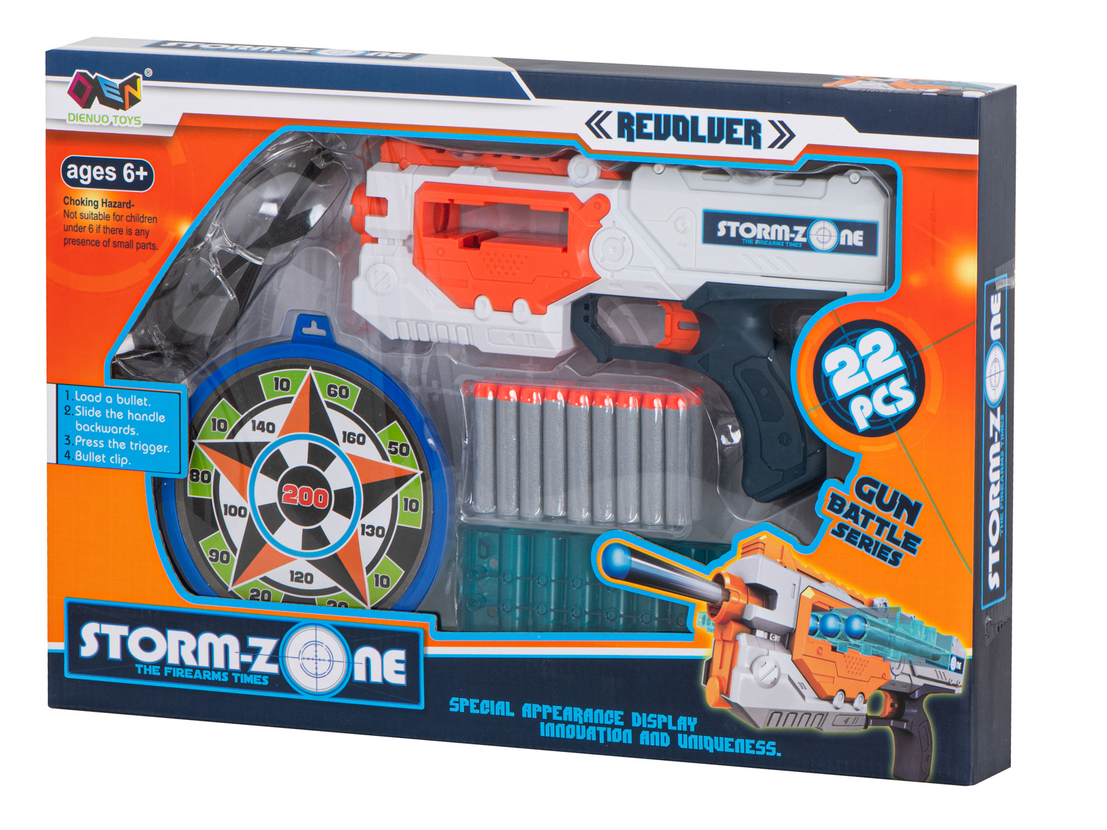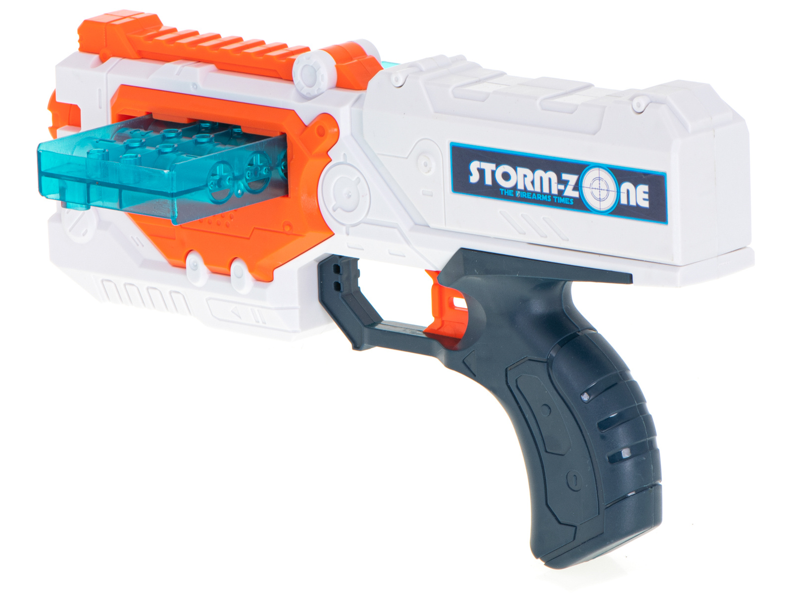 Vibrant colors resemble weapons from popular computer games, making the toy attractive to children of all ages.