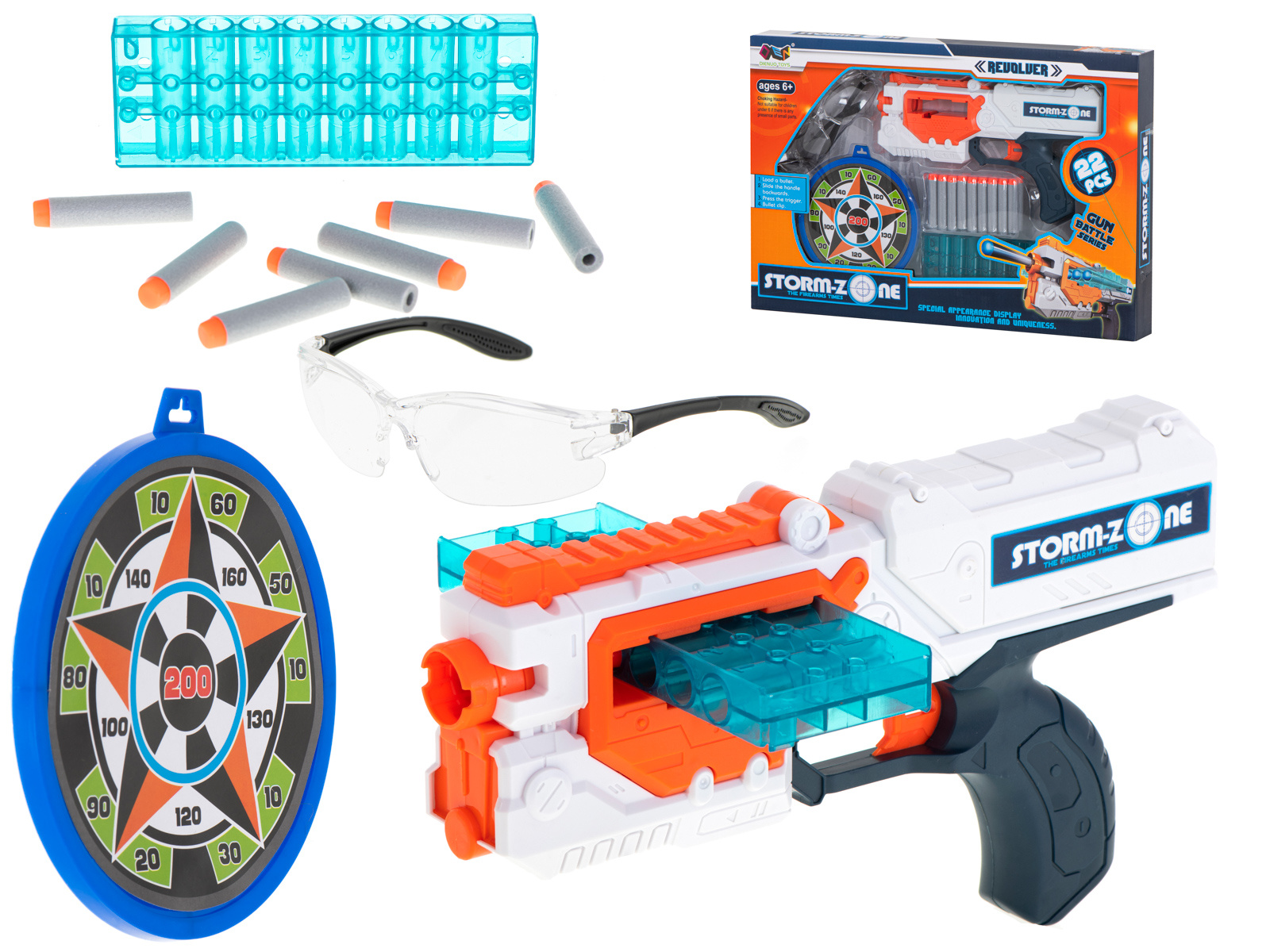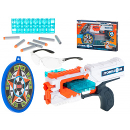 In addition to the gun, the set also includes a target that you need to aim at and shoot to hit.