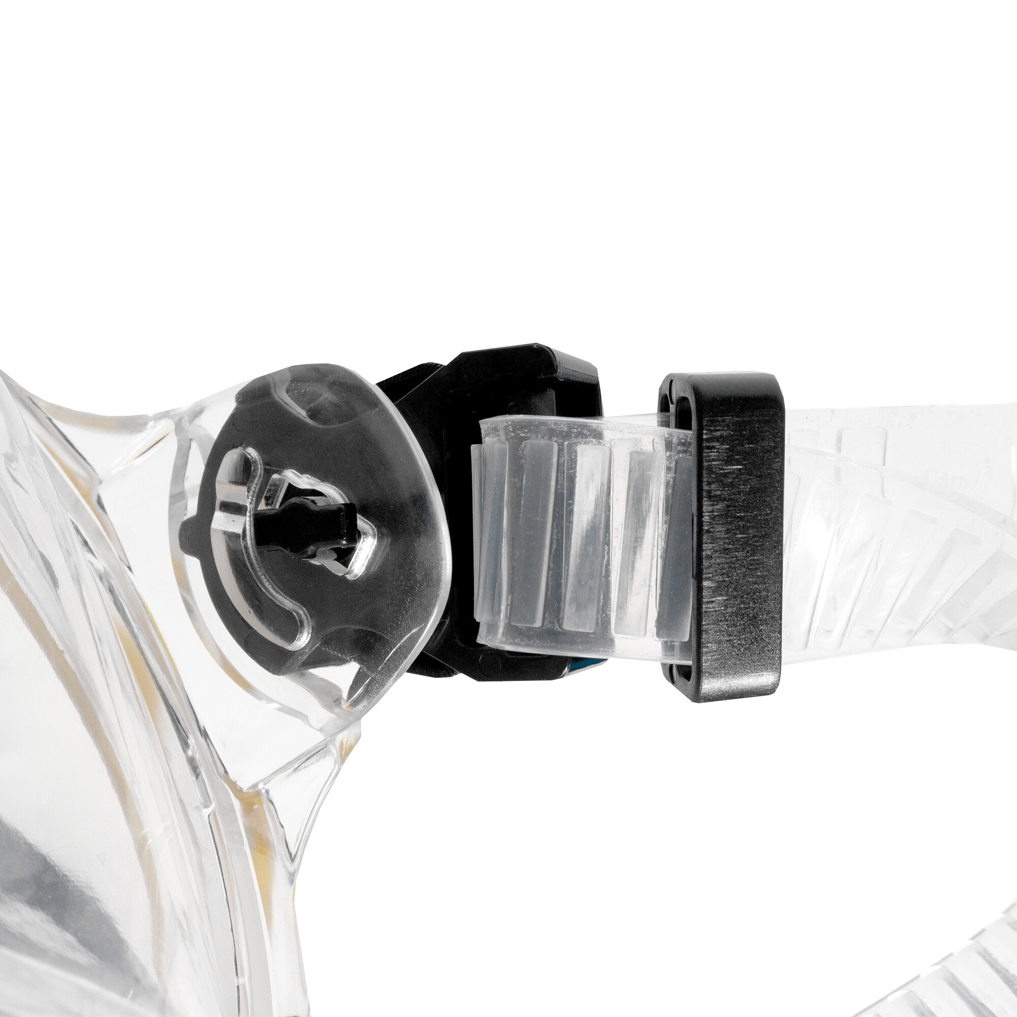 For proper diving, you will appreciate the Aga diving mask and snorkel. It does not lack binocular shaping. Thanks to its size and color, it is made for both men and women. The glasses will not tint the world in any way, as they are transparent.