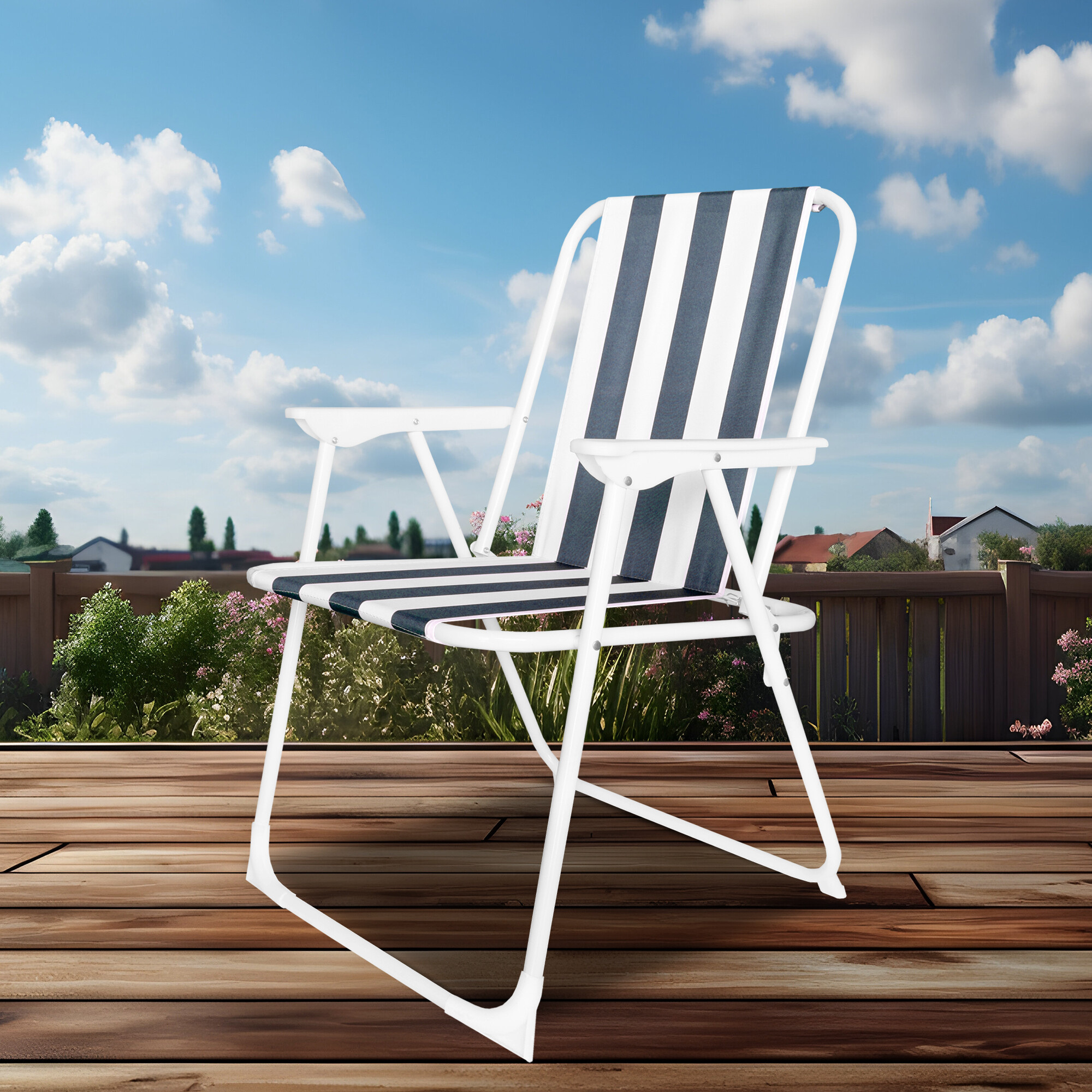 Folding garden chair with comfortable armrests, ideal for camping, but it will certainly find its use among fishermen, modelers, and cottage owners.