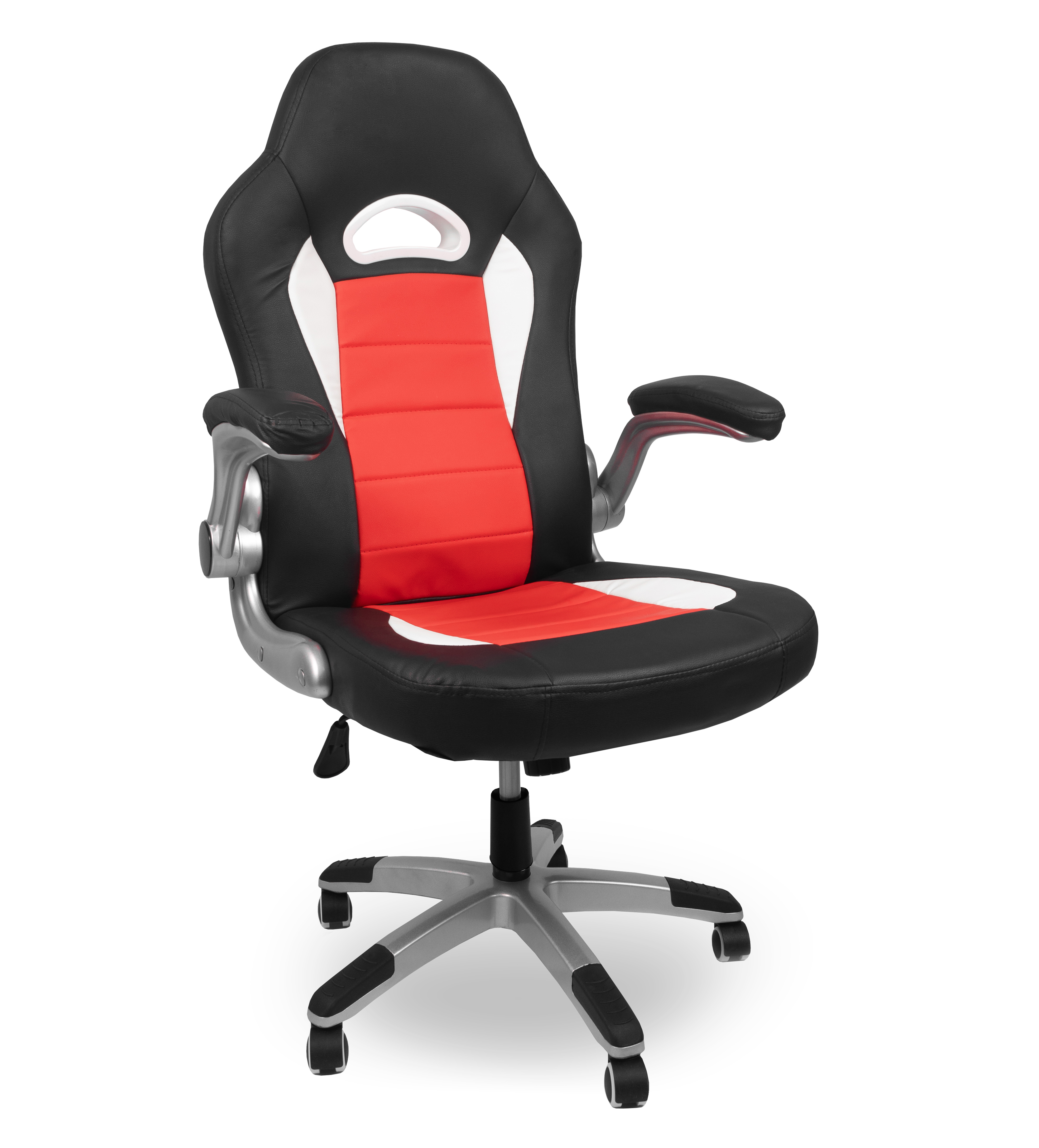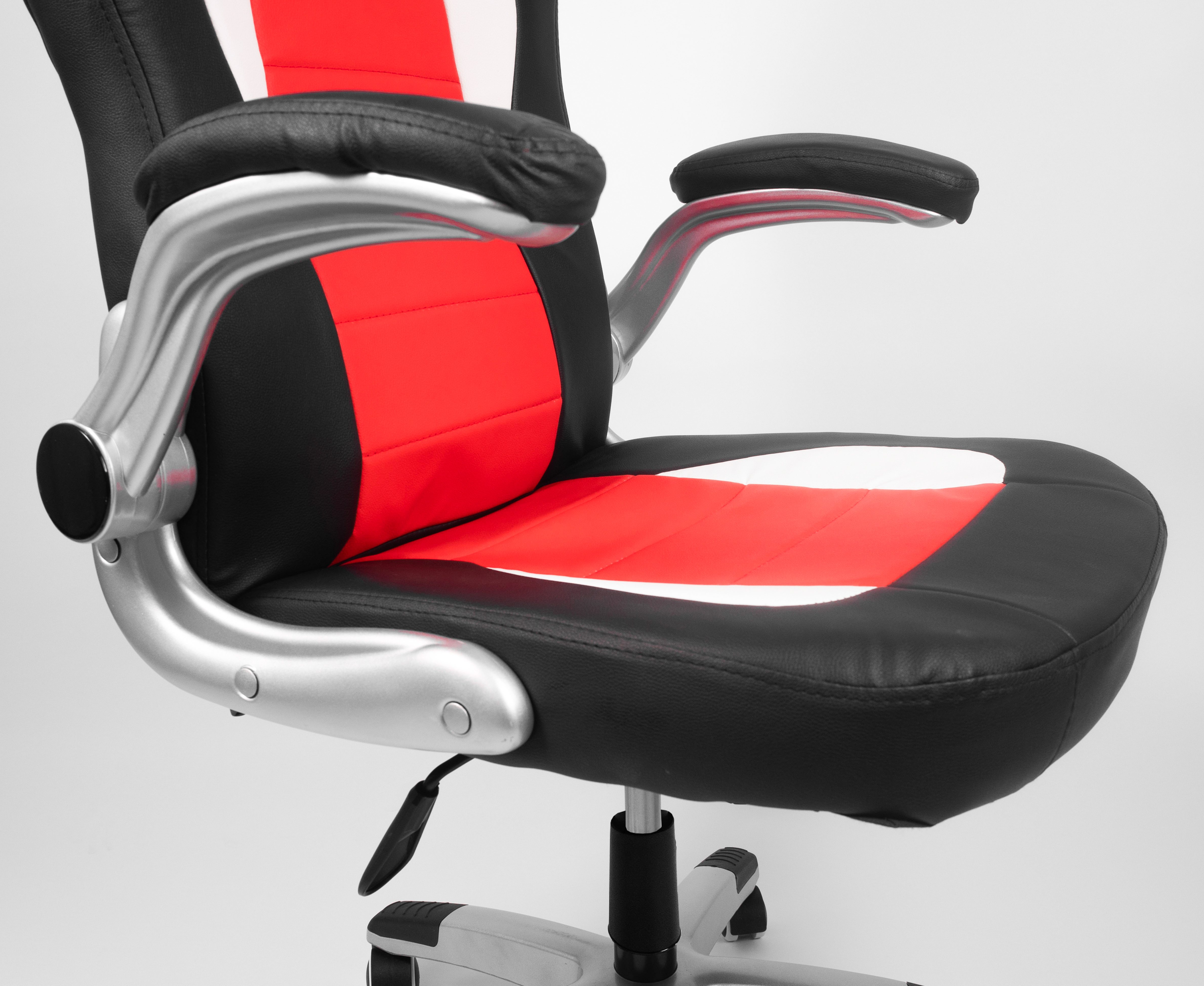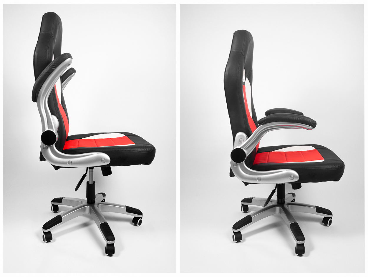 Your comfort is ensured by a durable eco-leather cover in attractive colors, a raised backrest, an ergonomically shaped seat, and flip-up armrests with a soft surface.