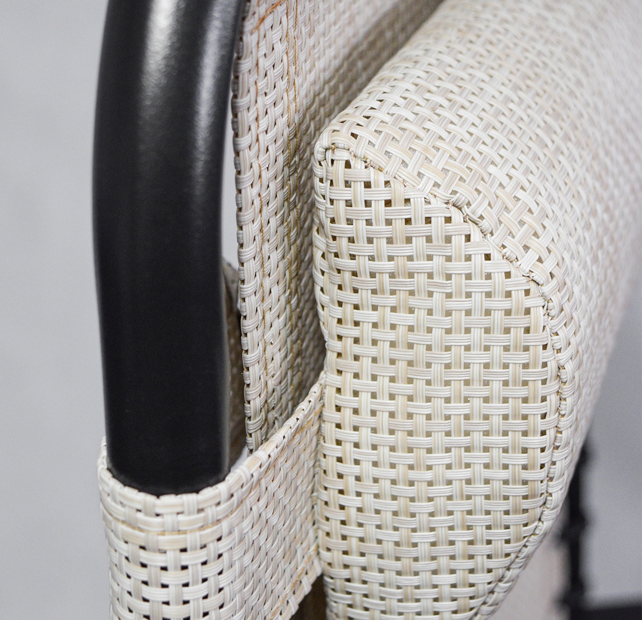 The chair is resistant to weather conditions, moisture, sun, rain, UV radiation, and is low-maintenance and easy to store.