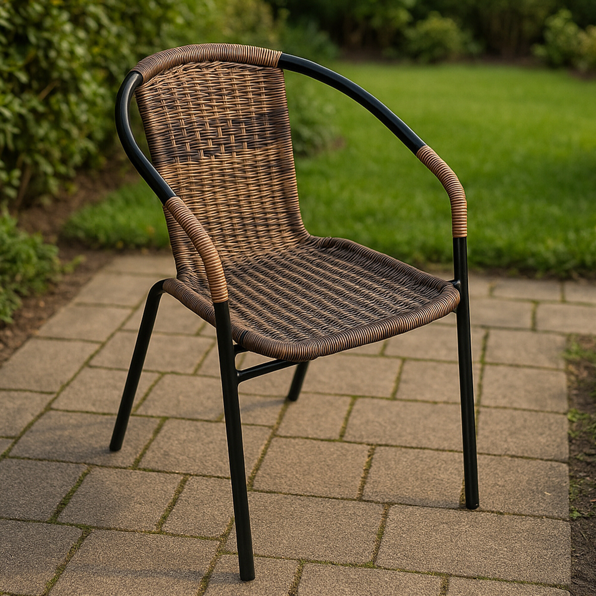 The garden chair is resistant to weather and climatic conditions, requires low maintenance, is easy to store, and can be used both indoors and outdoors all year round