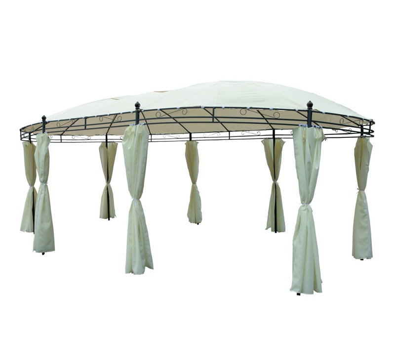 Garden gazebo equipped with a solid and stable structure, in oval design, with retractable hinges.