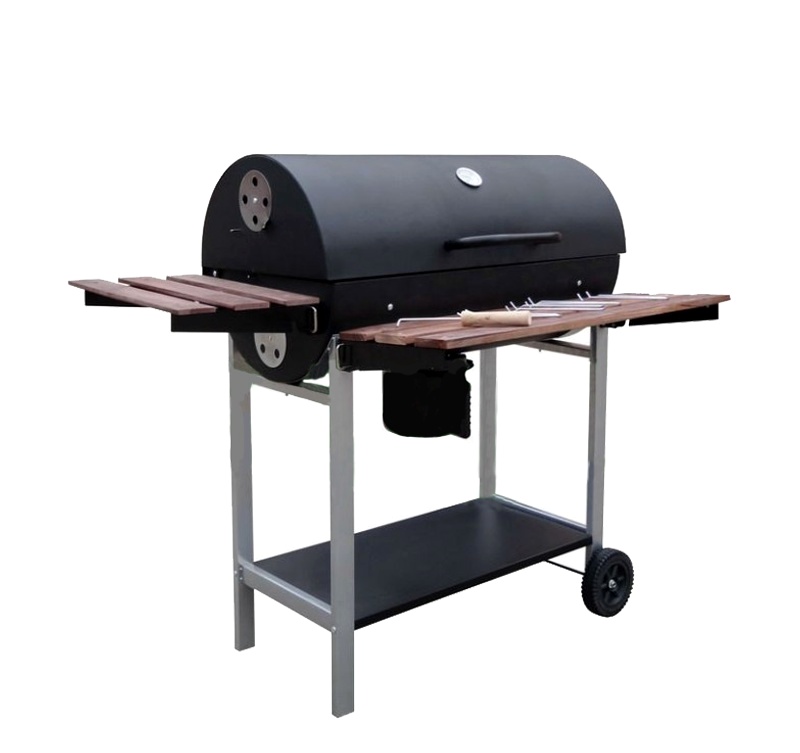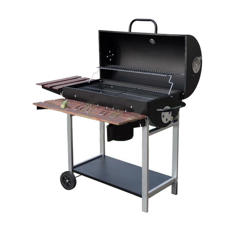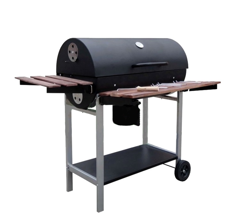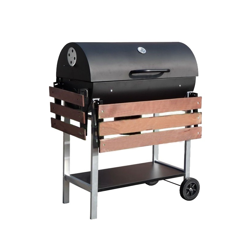 The spacious grill grate together with two wooden storage shelves allow for real comfort when grilling. The grill is equipped with castors for better handling.