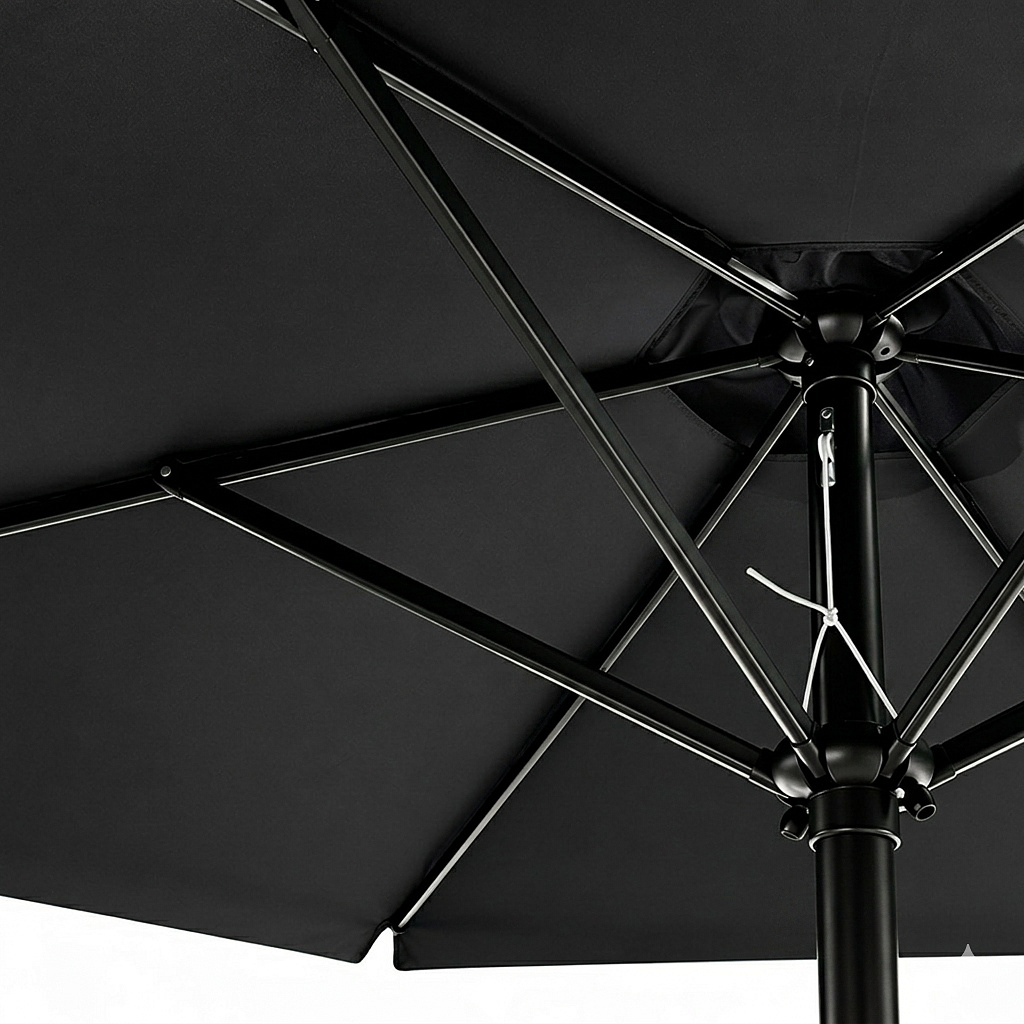 The construction of the parasol is made from high-quality aluminum, which excels in its strength and at the same time low weight. Compared to traditional steel, an aluminum parasol is more resistant to corrosion, making it an ideal solution for long-term outdoor use. The stability of the entire structure is ensured by a robust central pole with a diameter of 48 mm, along with sturdy ribs that help the parasol maintain its shape and withstand common weather conditions.