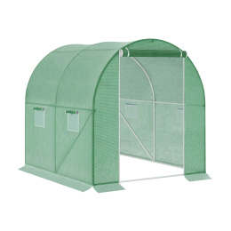 The construction consists of steel tubes powder-coated for maximum strength and perfect corrosion protection. The joints are bolted, which reliably ensures the rigidity of the structure.The transparent layer of PE film provides remarkable thermoregulation properties and maximum light transmission. Green PP mesh embedded in the film structure reinforces it and protects against tearing and mechanical damage.