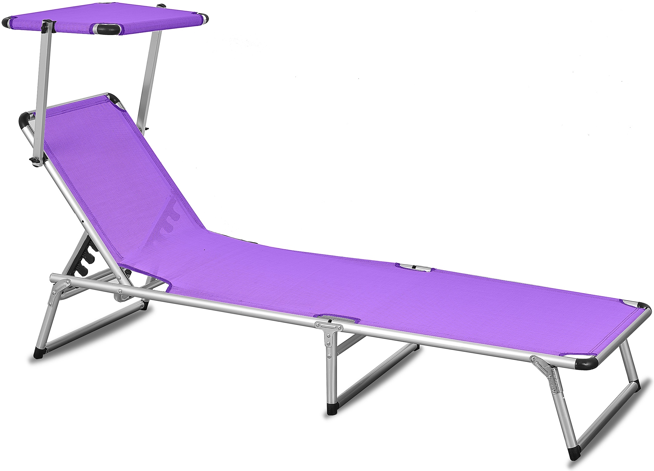 Folding garden deckchair with canopy and reinforced aluminium structure, in a modern design, suitable for gardens, camping or beaches.