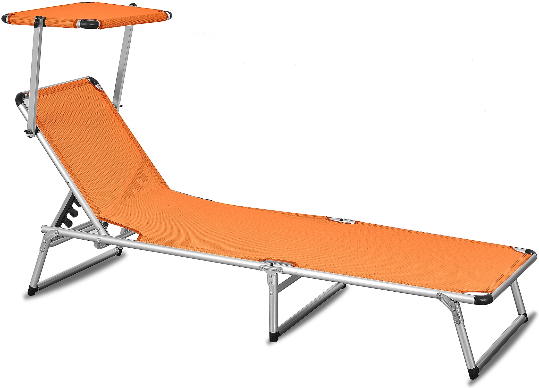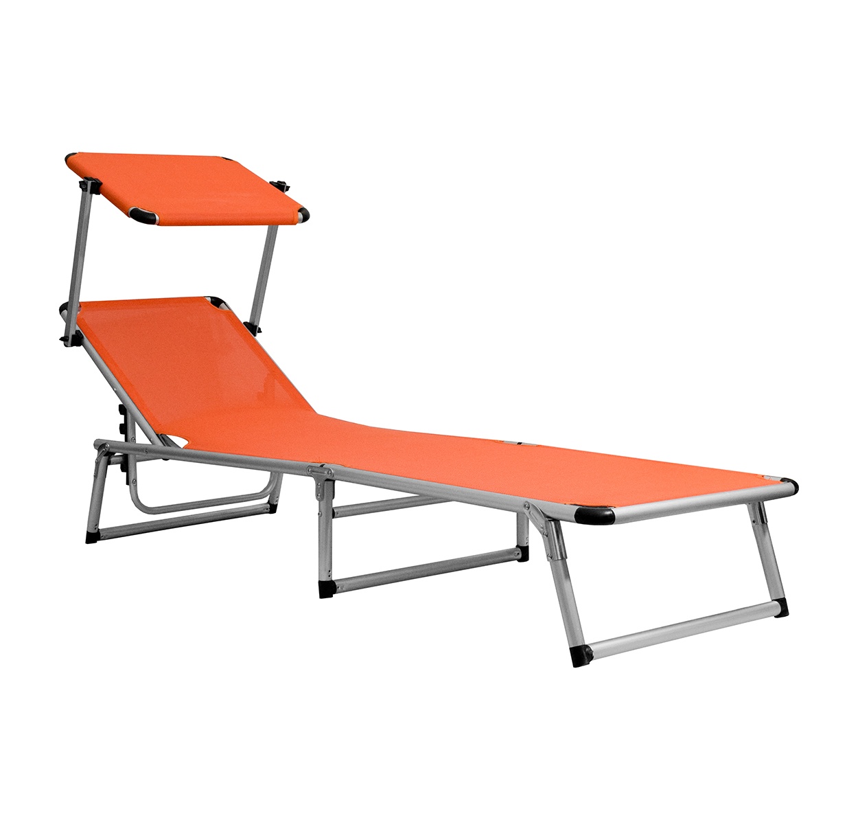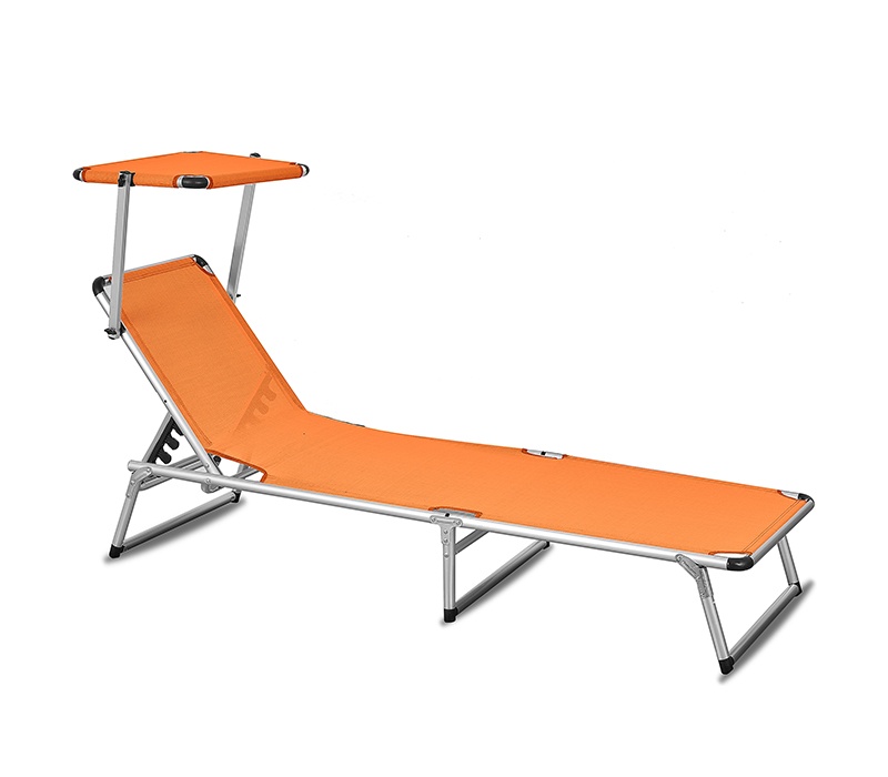 Folding garden deckchair with canopy and reinforced aluminium structure, in a modern design, suitable for gardens, camping or beaches.