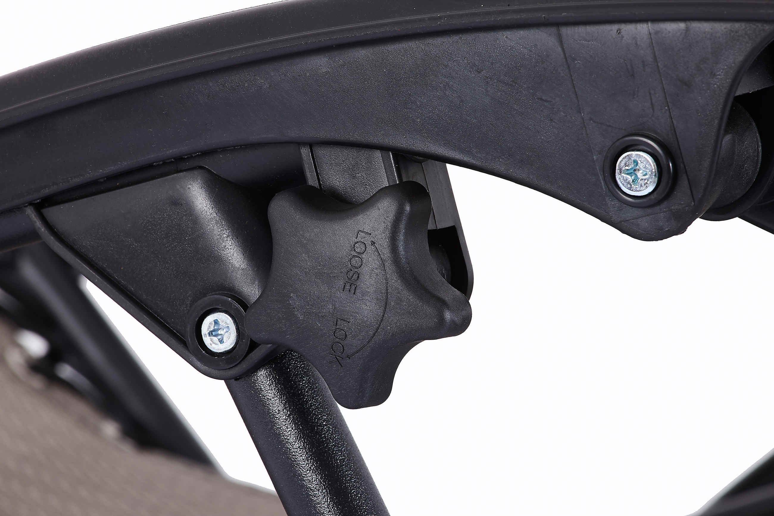 - Infinitely adjustable recliner position with locking option