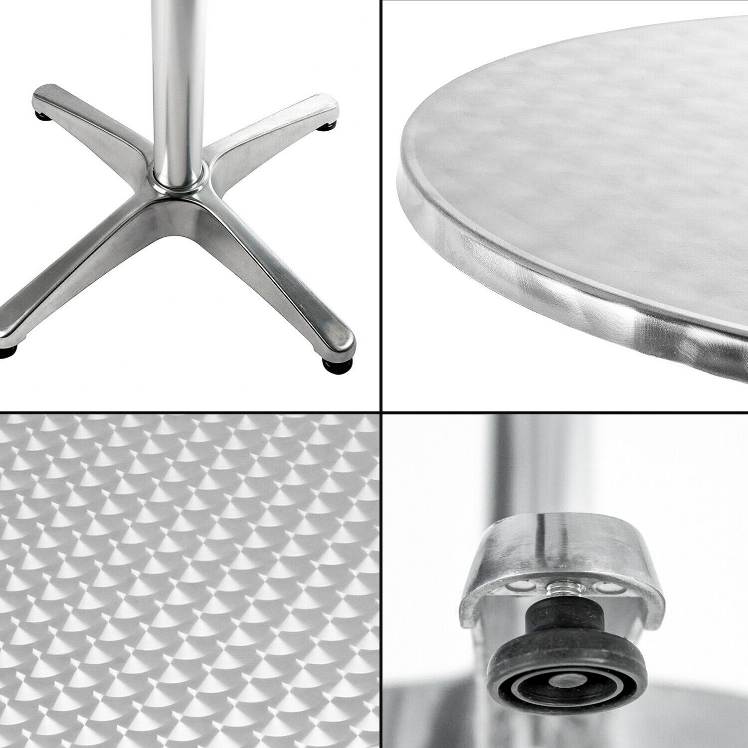 Garden table BISTRO with a sturdy aluminum frame and stainless steel top in a modern design, suitable for gardens, terraces, cafes, gazebos, balconies, or beaches.
