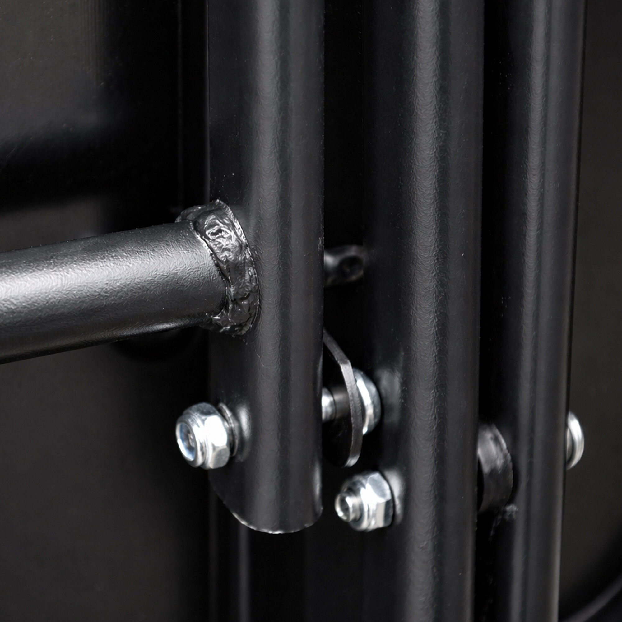 Table in anthracite color design. Tabletop made of 5 mm dark grey tempered safety glass.