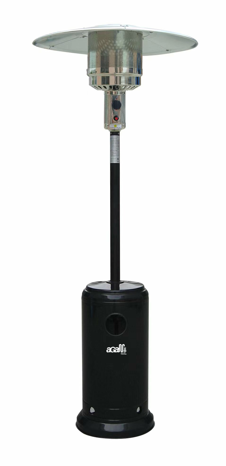 Control is easy, just connect the heater to a 5 or 10 kg propane butane bottle, for which there is storage space in the heater stand. Then press the button of the mechanical piezoelectric ignition and the Aga exterior heater will start to warm up.
