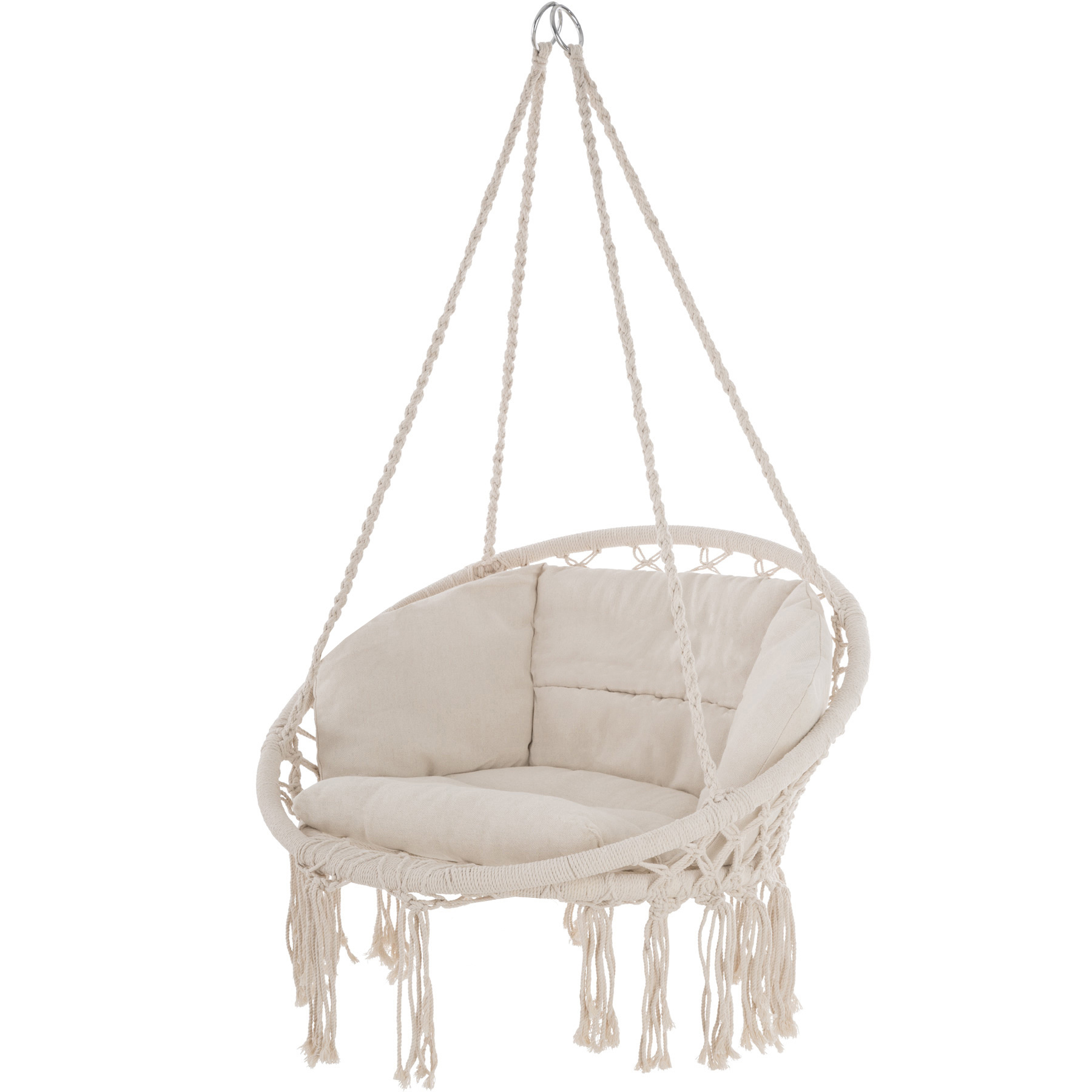 The seating part is attached with stable metal rings, allowing the chair to be hung almost anywhere.