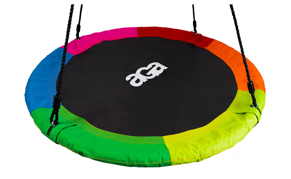 Single-point mounting - both ropes are hooked at one point, allowing the swing to rotate around its axis.