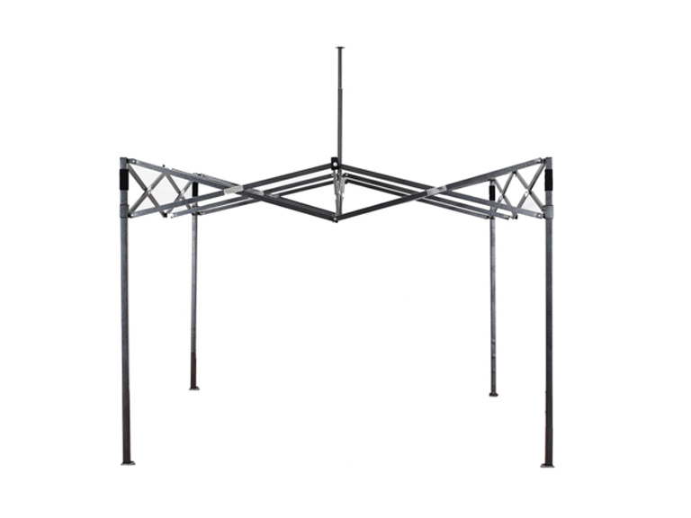 The construction is made of solid metal square-shaped powder-coated profiles.The legs of the booth structure are equipped with base plates with holes at the bottom, which are used for anchoring to a solid surface.