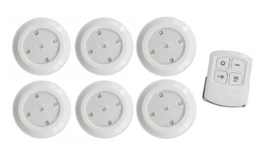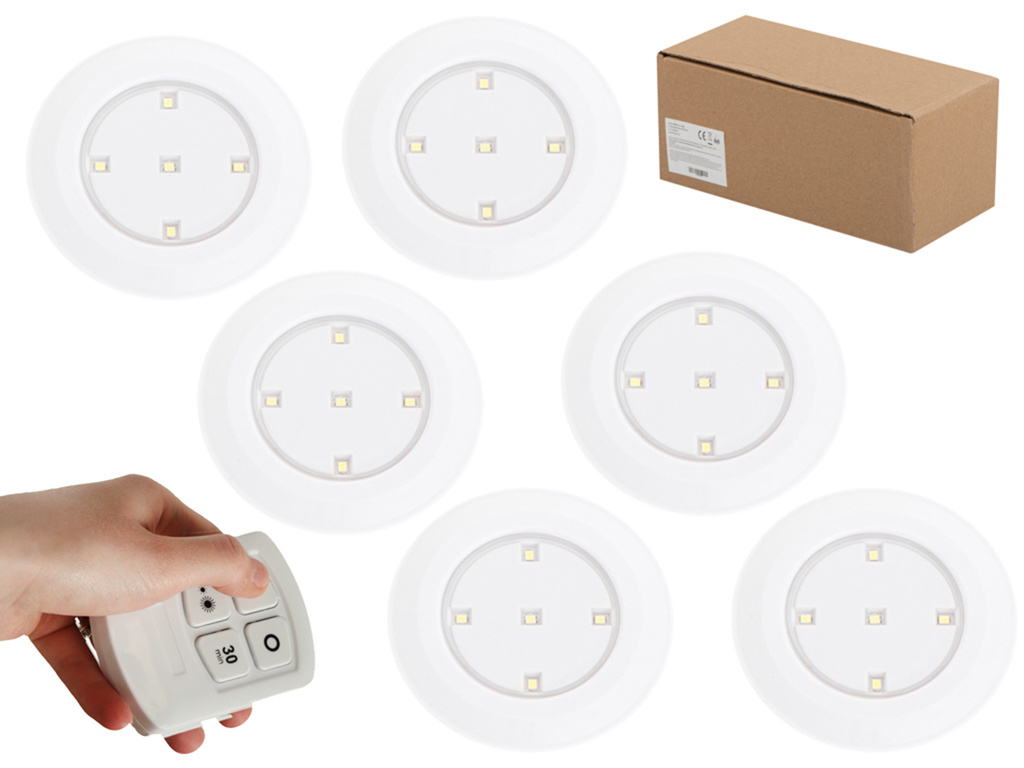WIRELESS LED LAMP WITH BATTERIES 6 PIECES + REMOTE CONTROL