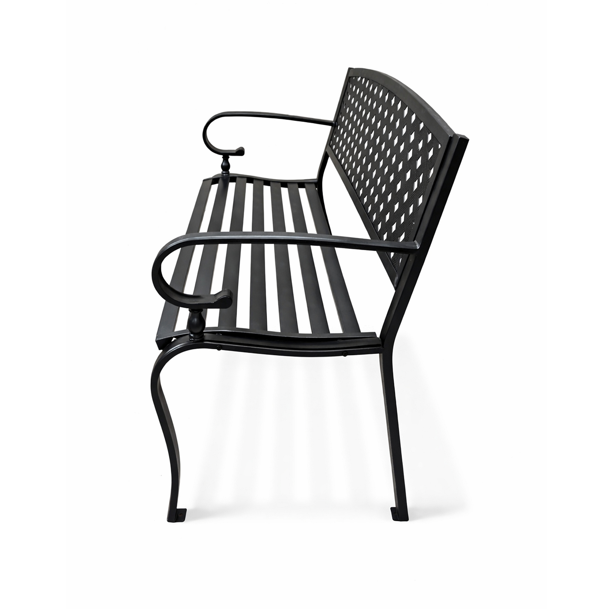 The construction of the garden bench is made of steel and cast iron, these materials are durable and at the same time ensure stability.