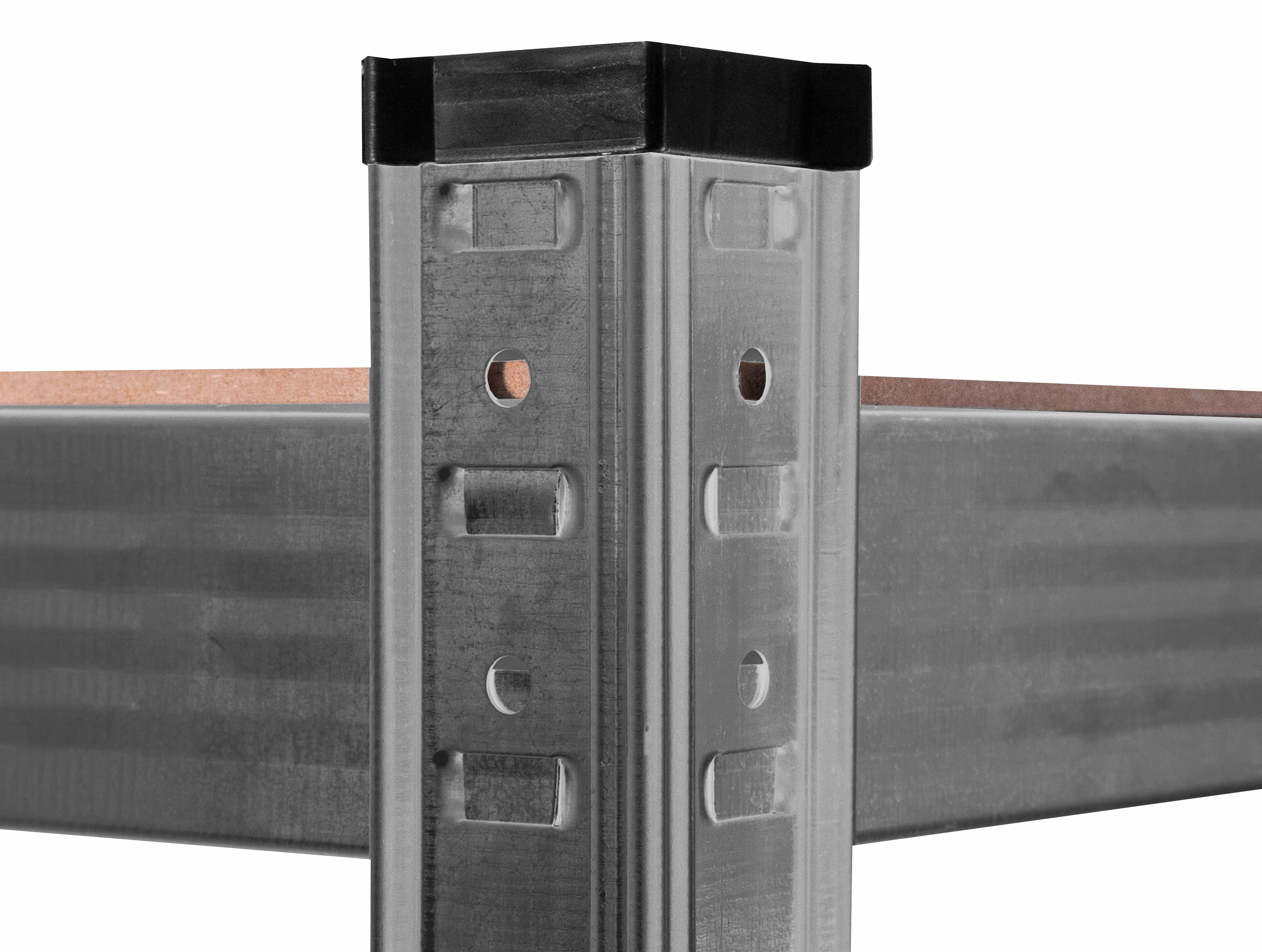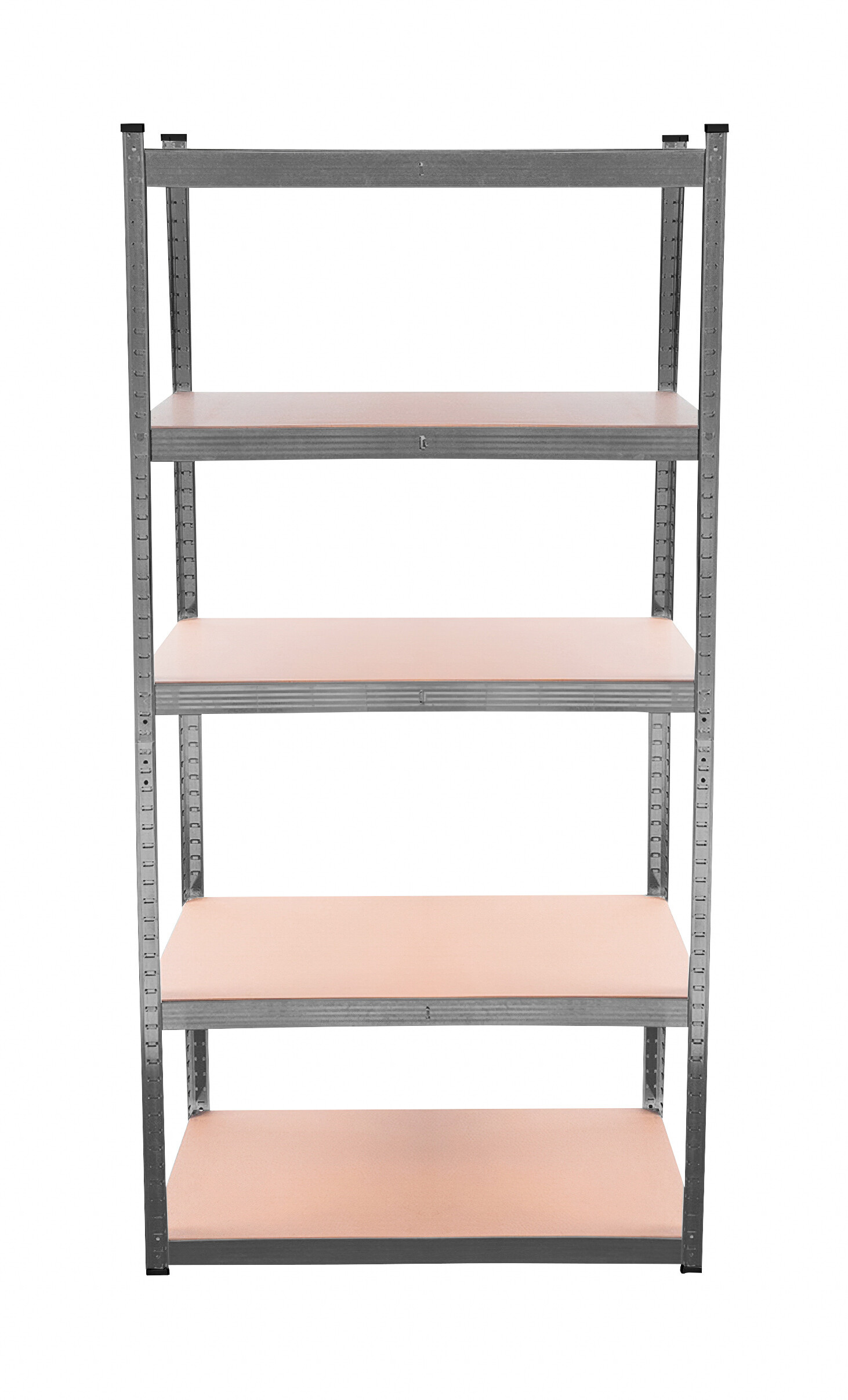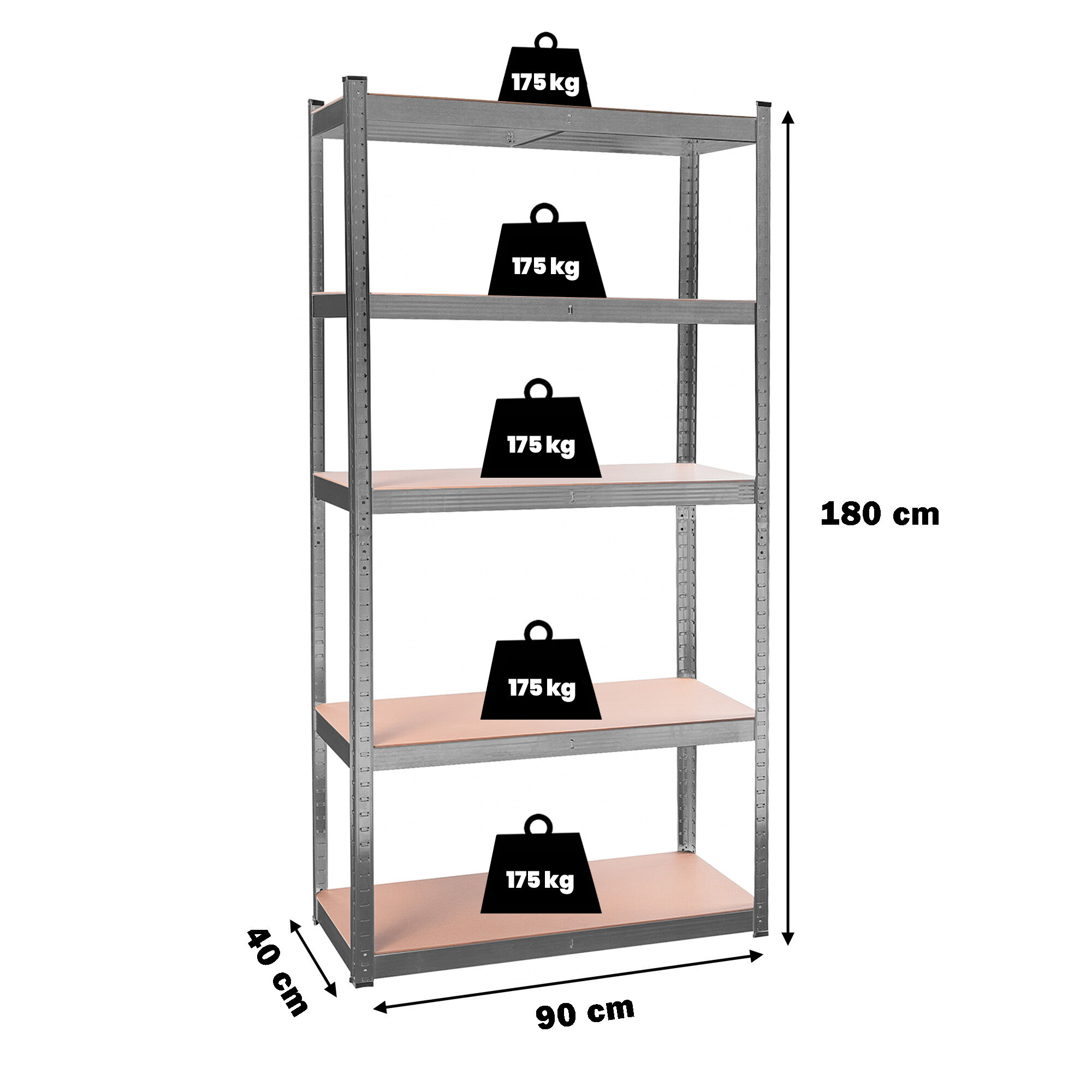 At a height of approximately 180 cm, you have 5 MDF shelves available, which can be adjusted in height as needed. The frame made of galvanized steel in black color ensures stability and a high load capacity of approximately 875 kg (each shelf can hold approximately 175 kg).