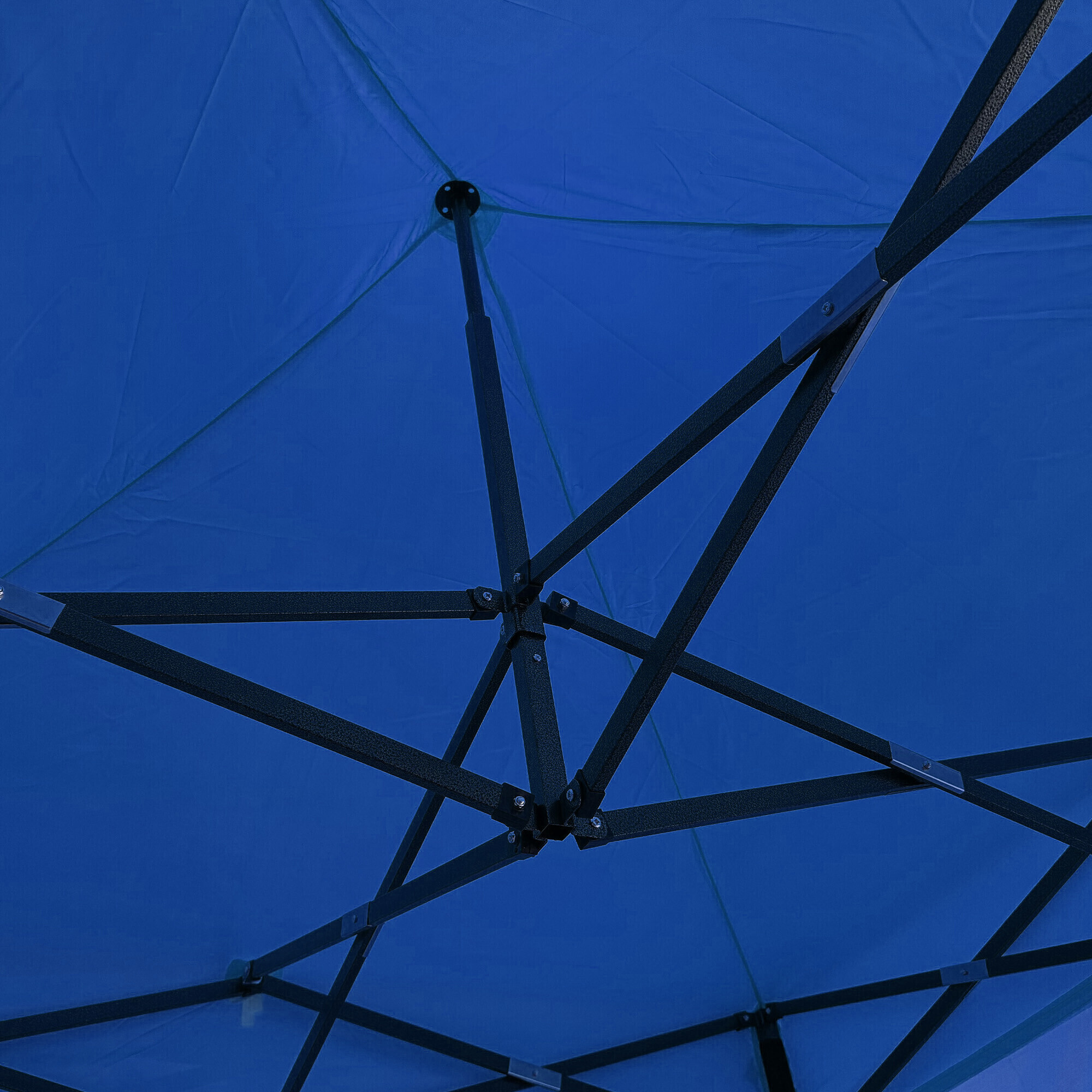 Thanks to the simple scissor construction, the booth can be set up and taken down very quickly (approximately 5-10 minutes).