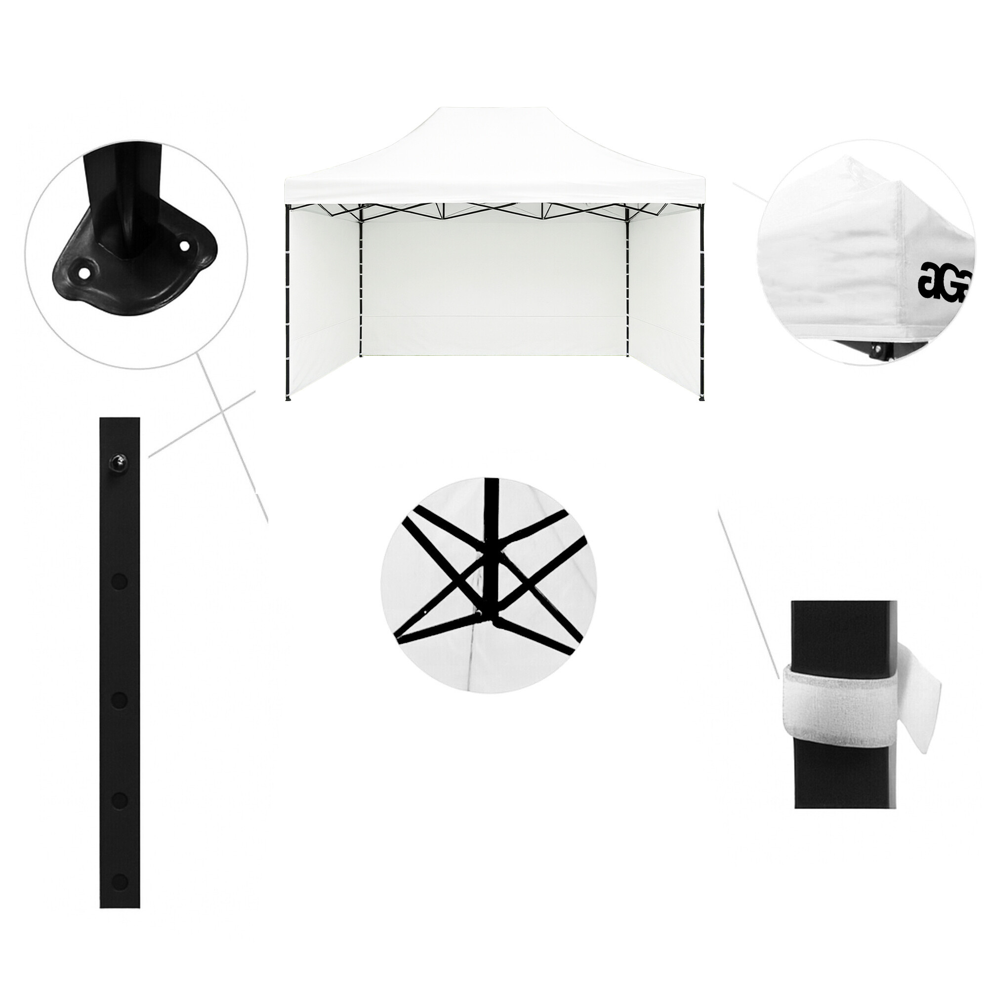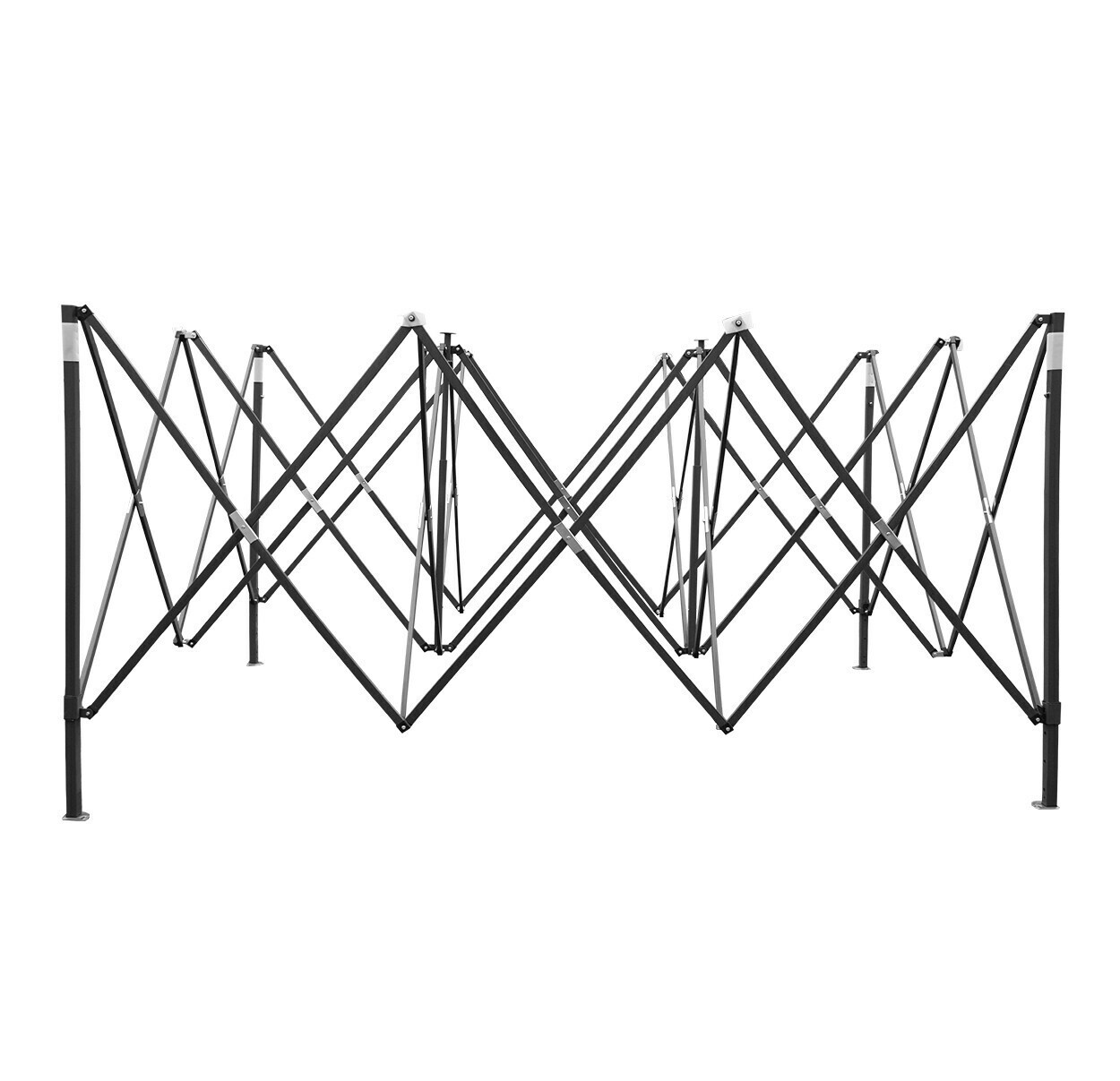 Thanks to the simple scissor construction, the booth can be set up and taken down very quickly (approximately 5-10 minutes).