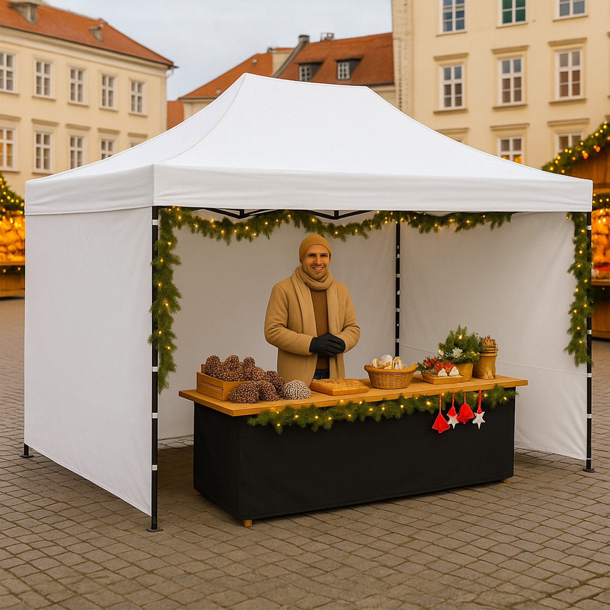 The booth can be used both outdoors and indoors and has a wide range of possibilities for its use; it can be used, for example, as a sales, party, exhibition, or advertising booth.