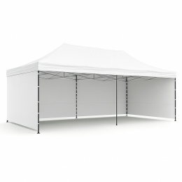 Thanks to the simple scissor construction, the booth can be set up and taken down very quickly (approximately 5-10 minutes).