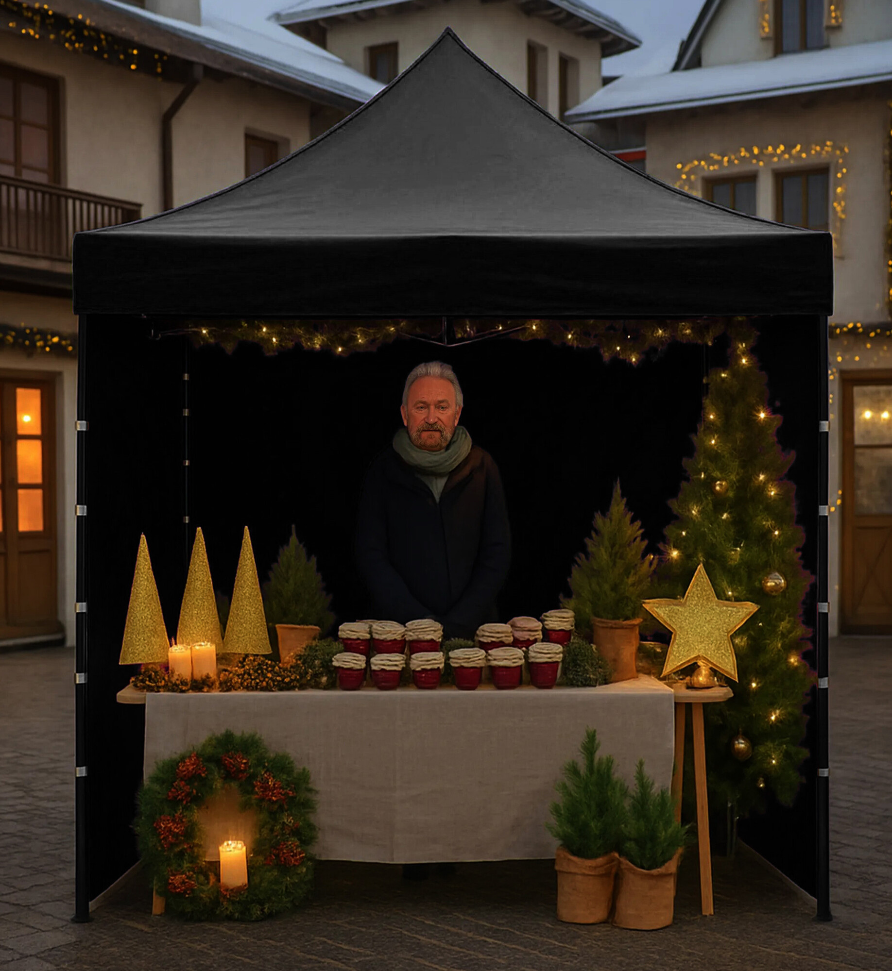 The roof made of 420D PU Oxford and the sidewalls made of PVC Oxford 210D provide protection against wind and rain while creating a representative environment for both vendors and customers. Thanks to the practical Velcro, the side panels can be quickly removed or reattached.
