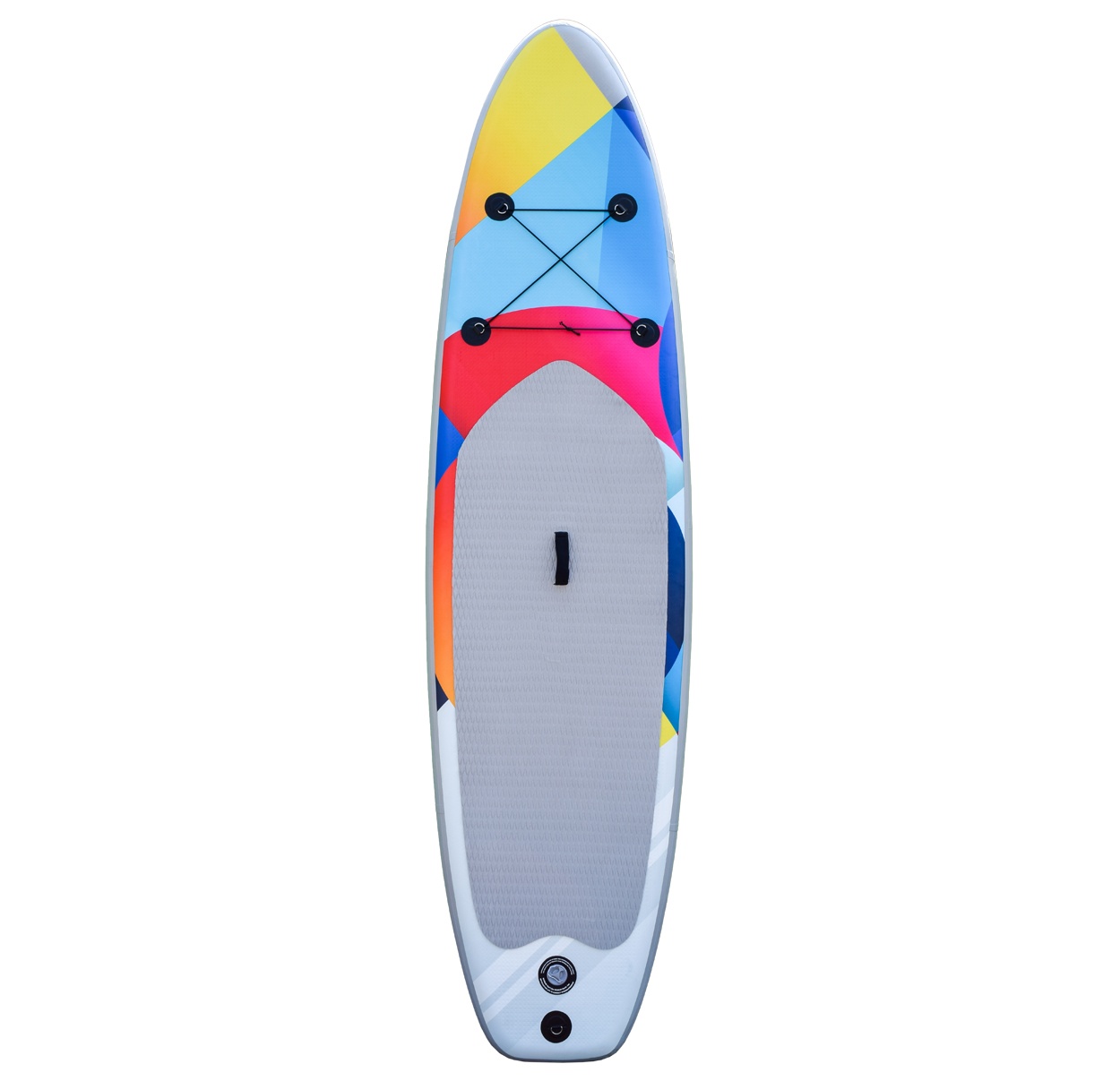 The paddleboard is perfect for all age groups, thanks to its construction and dimensions.The paddleboard is made from durable materials resistant to saltwater and UV radiation, and it can be easily inflated, deflated, and packed into a backpack.