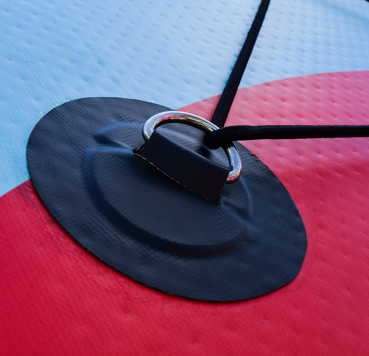 The board is equipped with D-ring mounts on the bow and stern for attaching a safety leash.