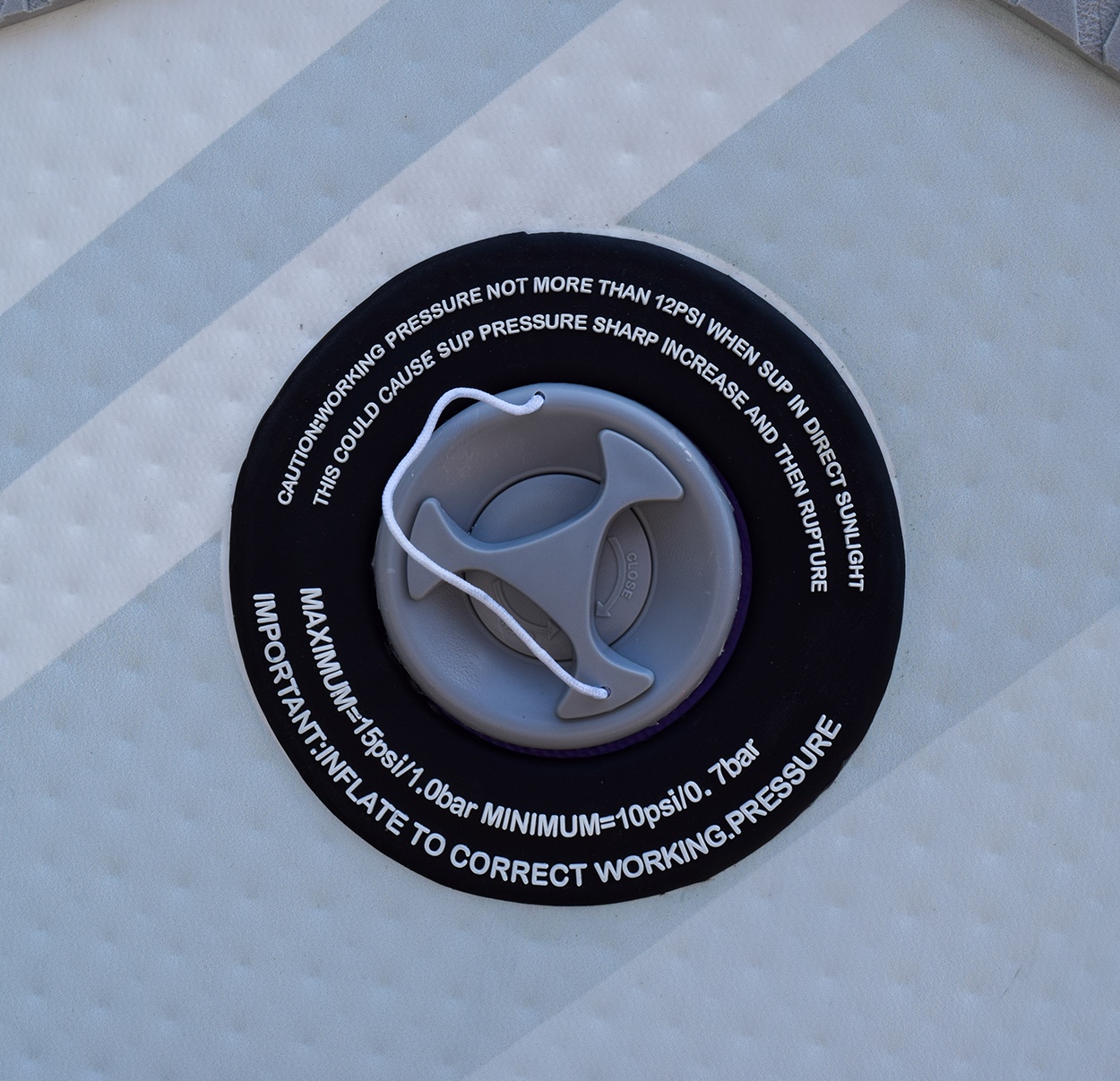 In the package, you will find everything you might need to hit the water: a three-piece aluminum paddle with adjustable length, a pump with a pressure gauge, a safety leash for the foot, a fin, a repair kit.
