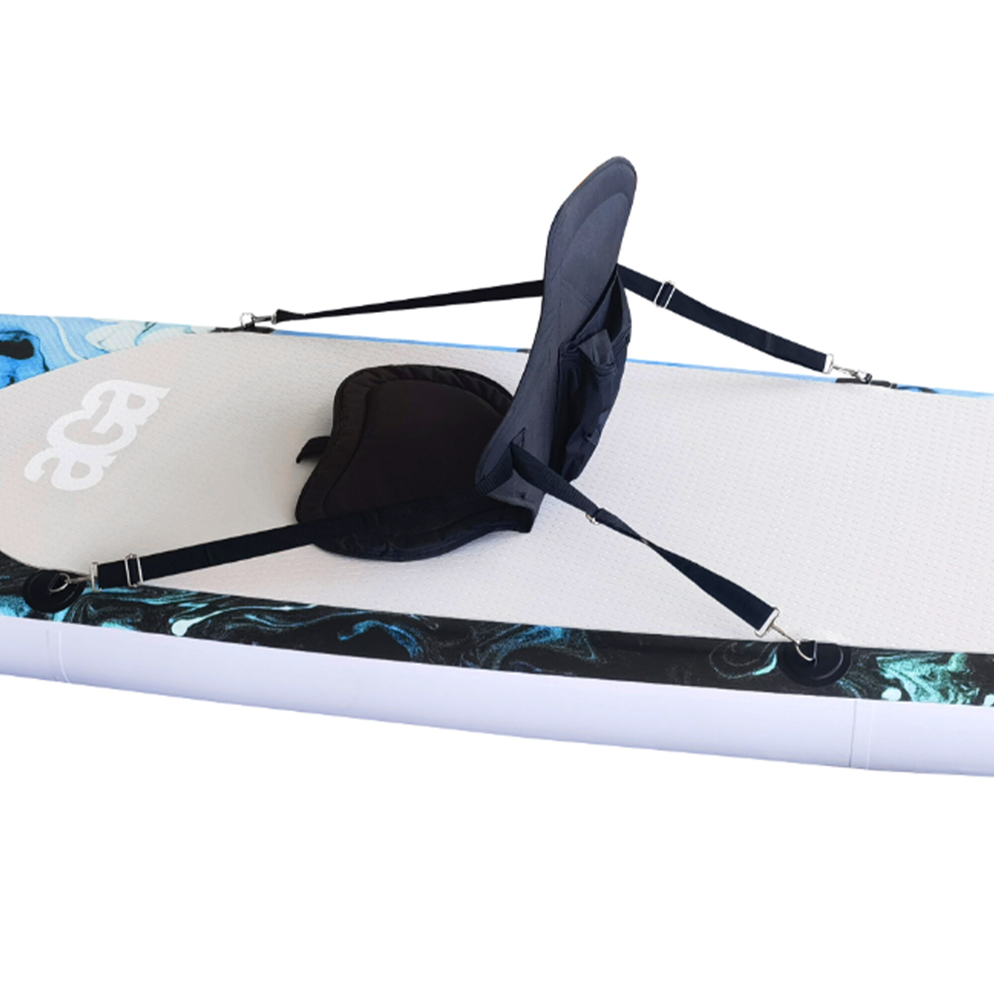 In the package, you will find everything you might need to hit the water: a three-piece aluminum paddle with adjustable length, a seat, a pump with a pressure gauge, a safety leash for the foot, a fin, a repair kit, and a bag for transporting the paddleboard.
