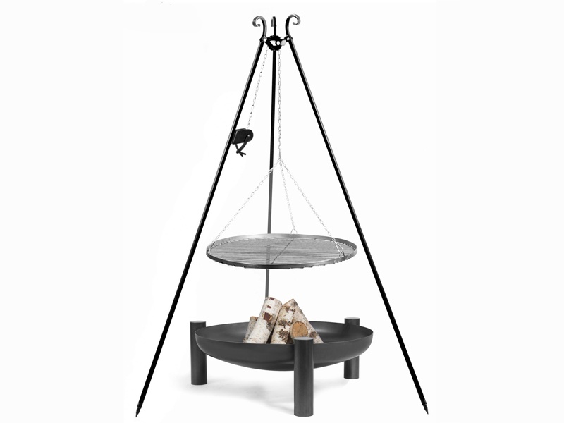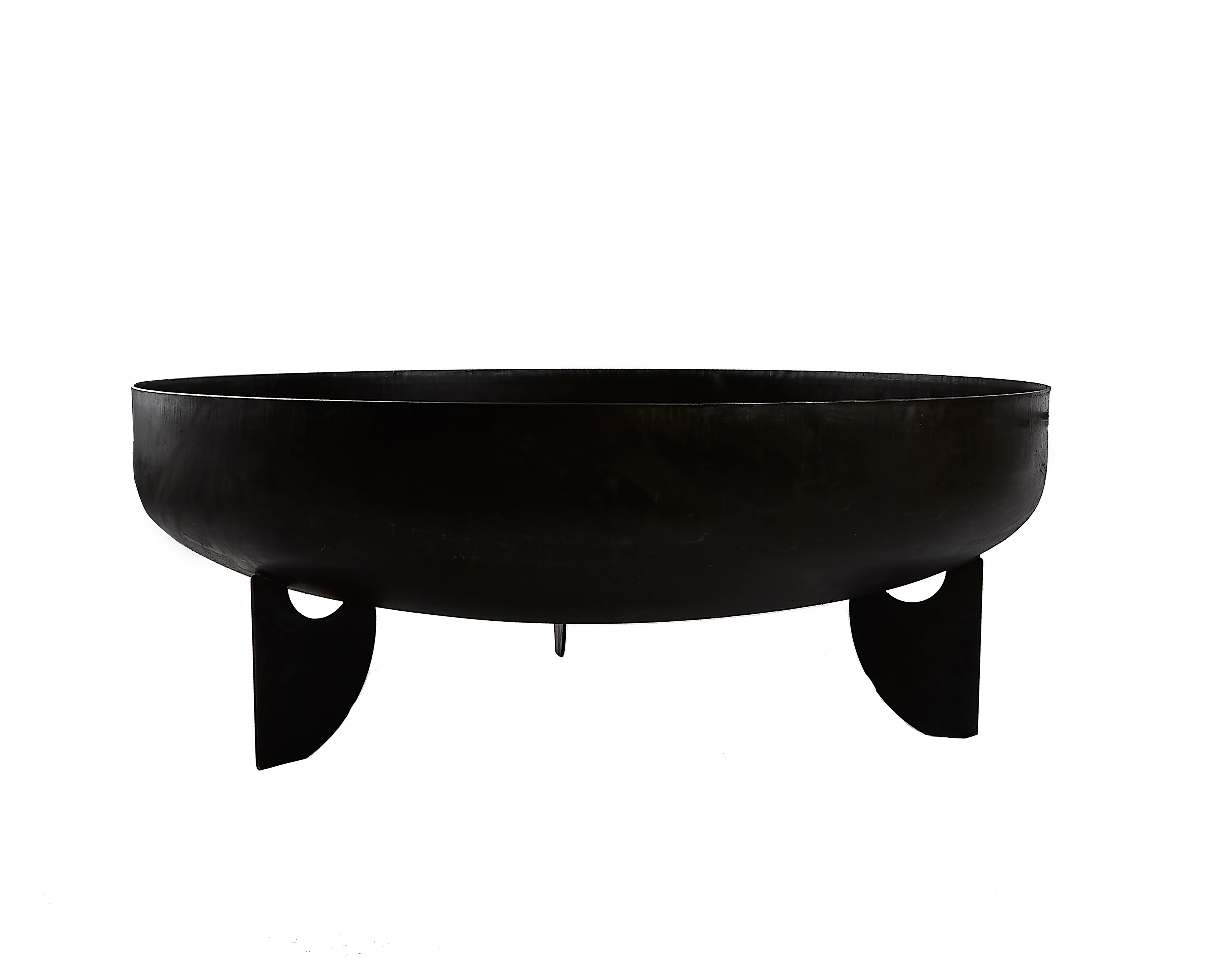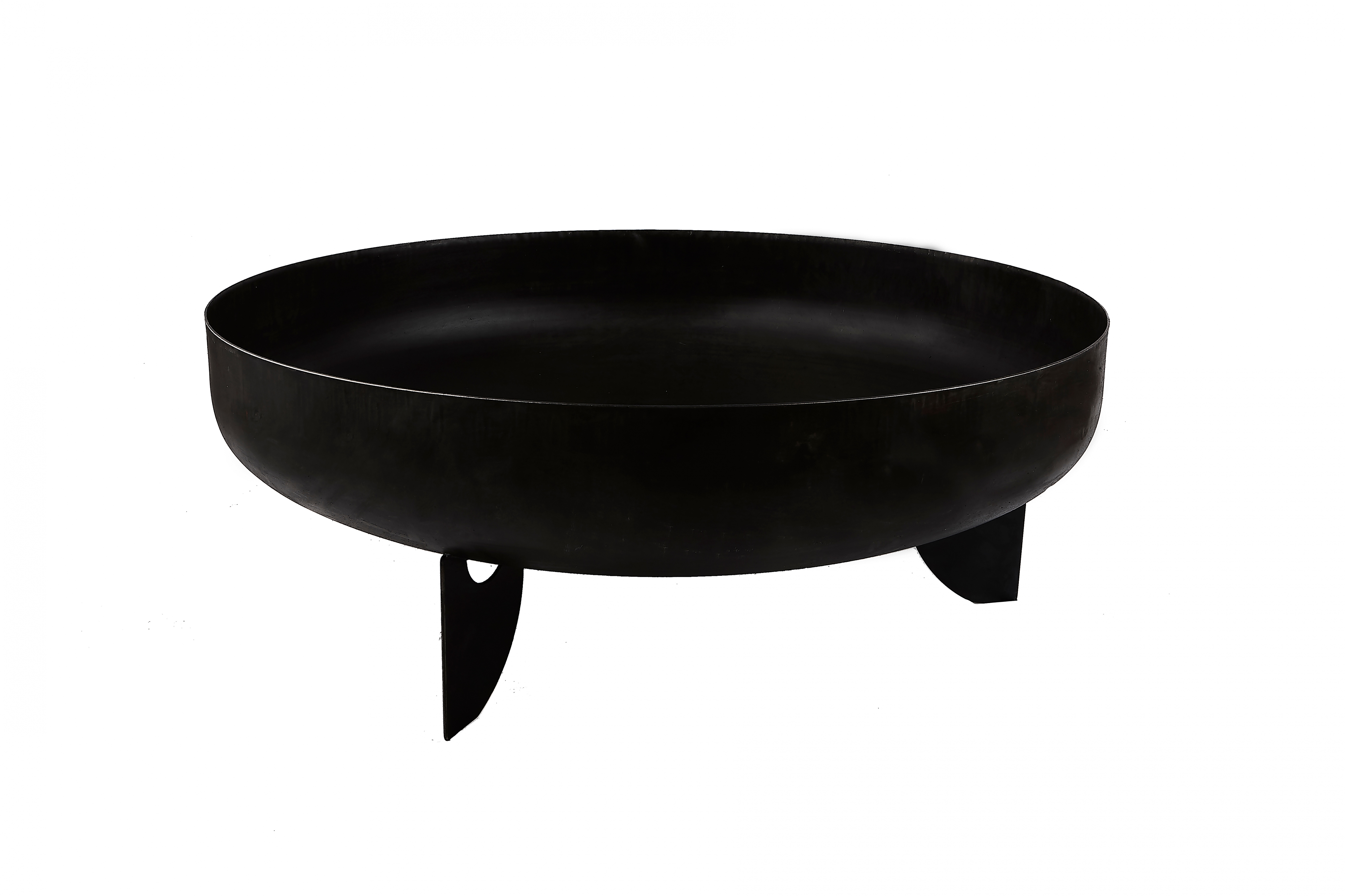 The round fireplace with a diameter of 100 cm and a bowl depth of 21 cm is made of solid steel with a thickness of approx. 2.5 mm. To guarantee maximum stability, it is equipped with three solid bases made of the same material.