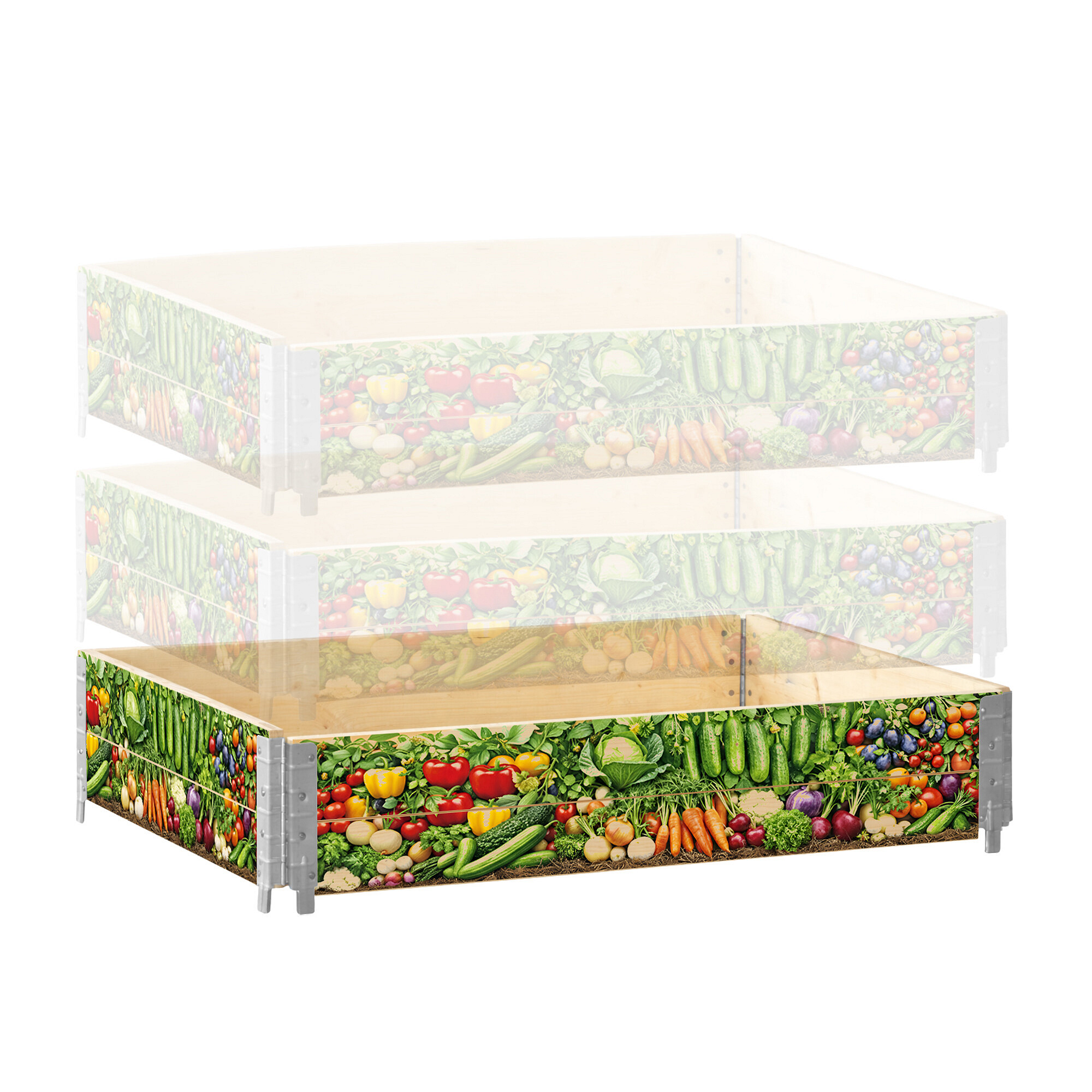 An advantage is also the possibility of extending the bed upwards using additional identical parts. This allows for the creation of a higher raised bed with a deeper growing space, a larger volume of substrate, and better conditions for plants with a deeper root system.
