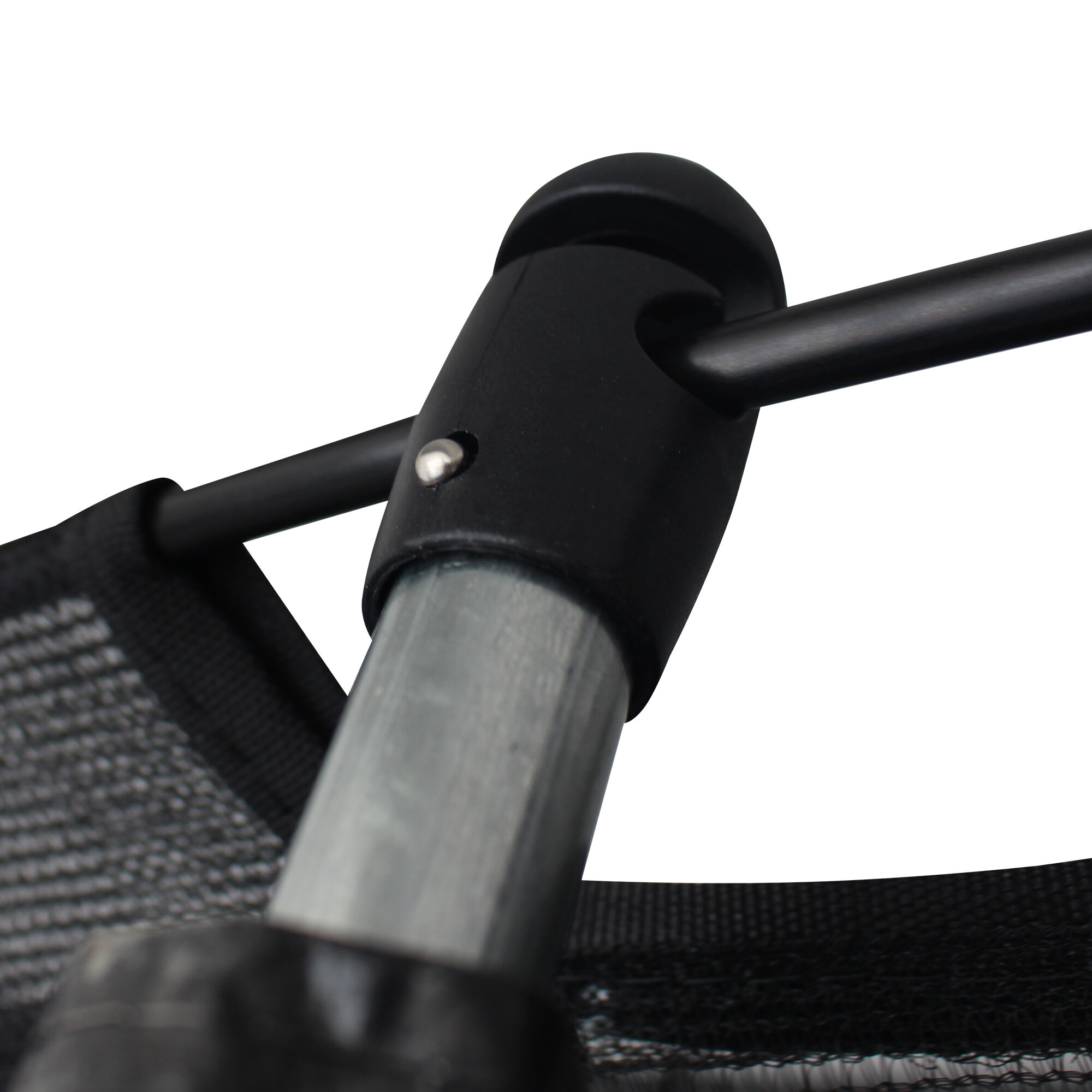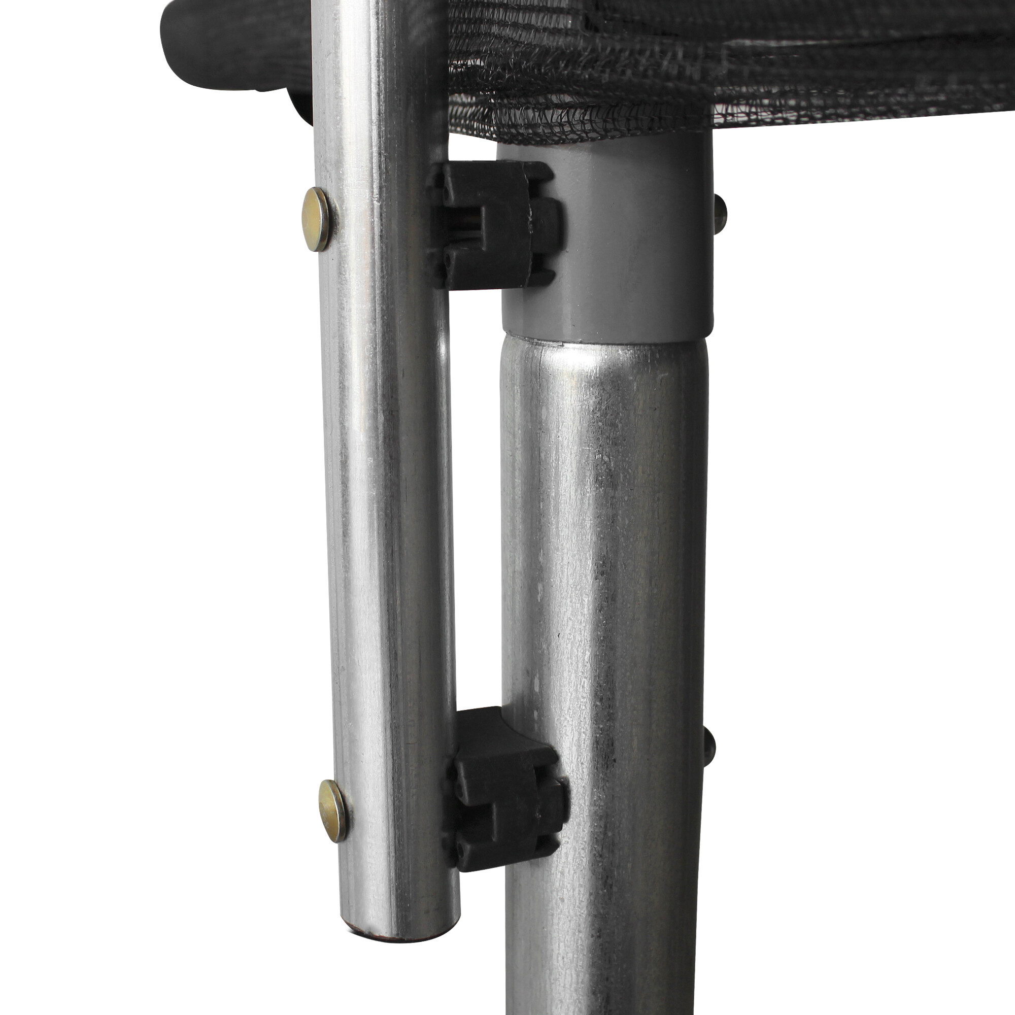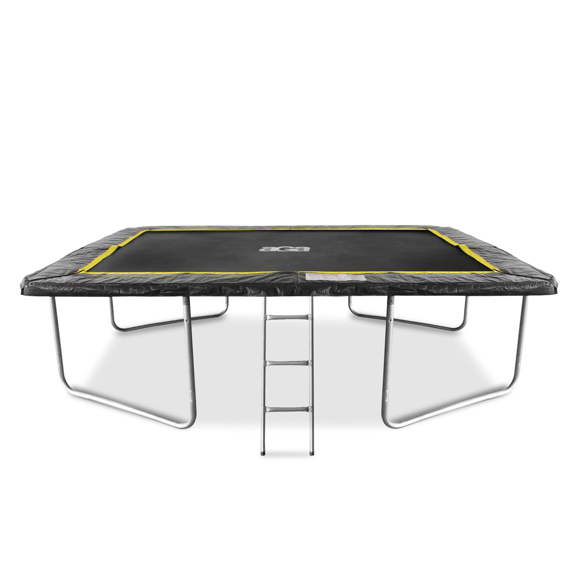The rectangular Hi-Ten reinforced trampoline construction is made of high-quality galvanized steel with excellent corrosion resistance, and the U-legs have a powder-coated finish.