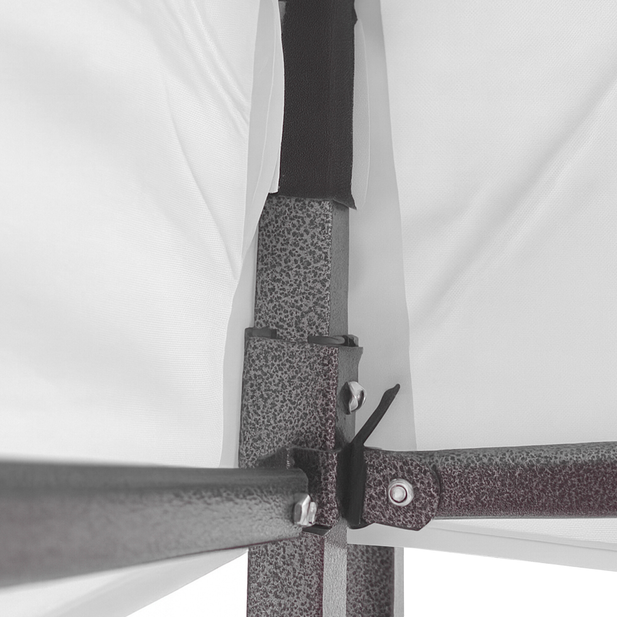 Thanks to the simple scissor construction, the booth can be set up and taken down very quickly (approximately 5-10 minutes).