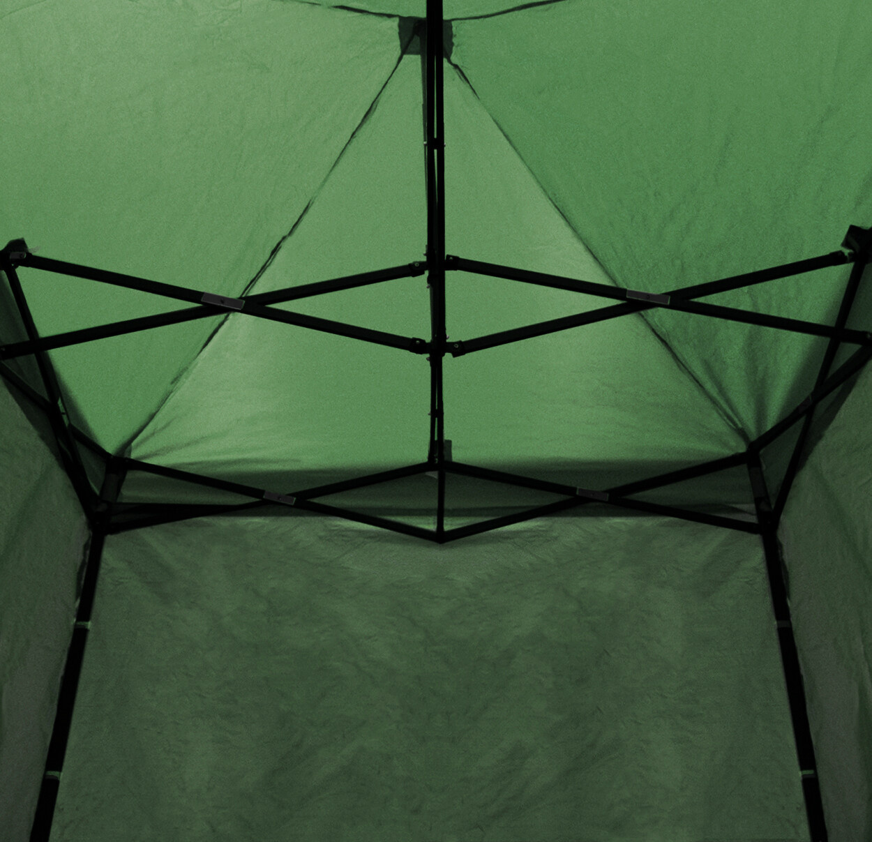 Thanks to the simple scissor construction, the booth can be set up and taken down very quickly (approximately 5-10 minutes).