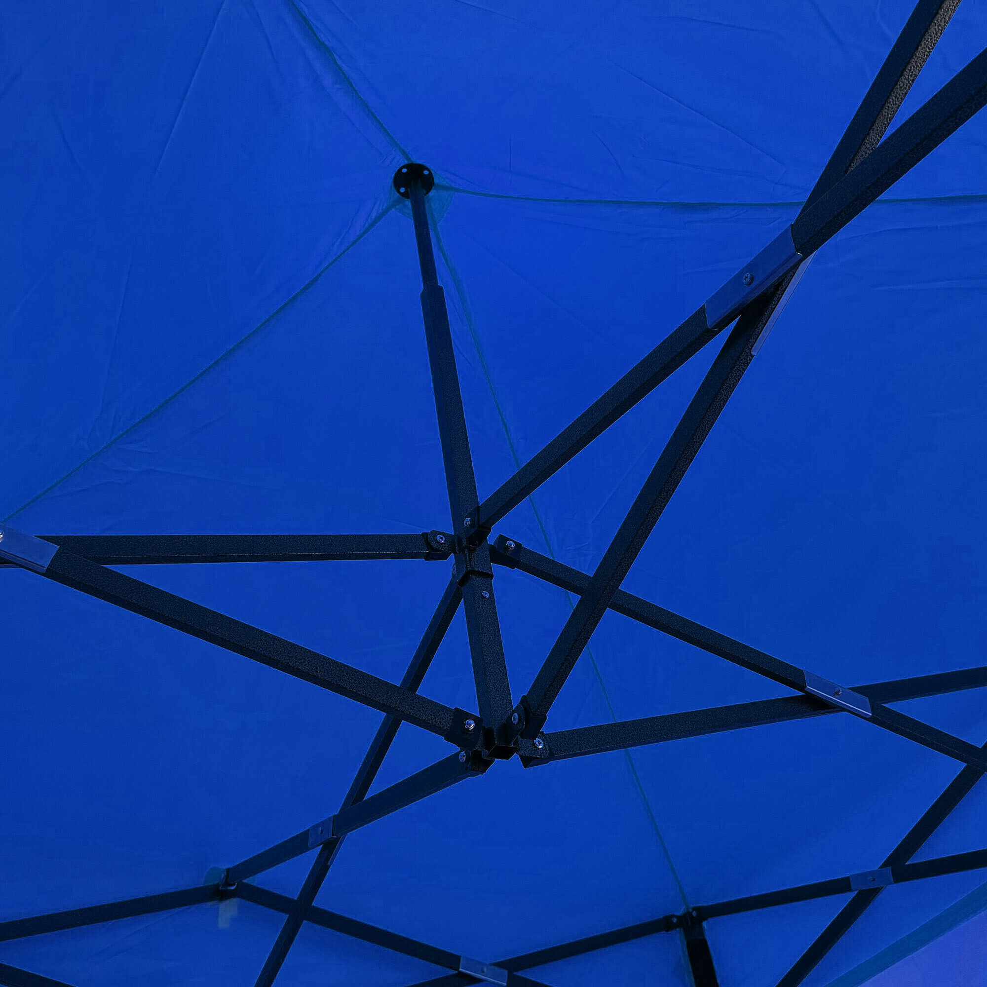 The roof is made of durable 420D PU Oxford material, which protects against the sun and light rain and can be easily maintained by hand washing. The steel scissor structure is strong and stable, with a powder-coated finish for corrosion resistance. Bolted connections ensure higher durability and longer lifespan. The height can be adjusted to three positions (213–290 cm).