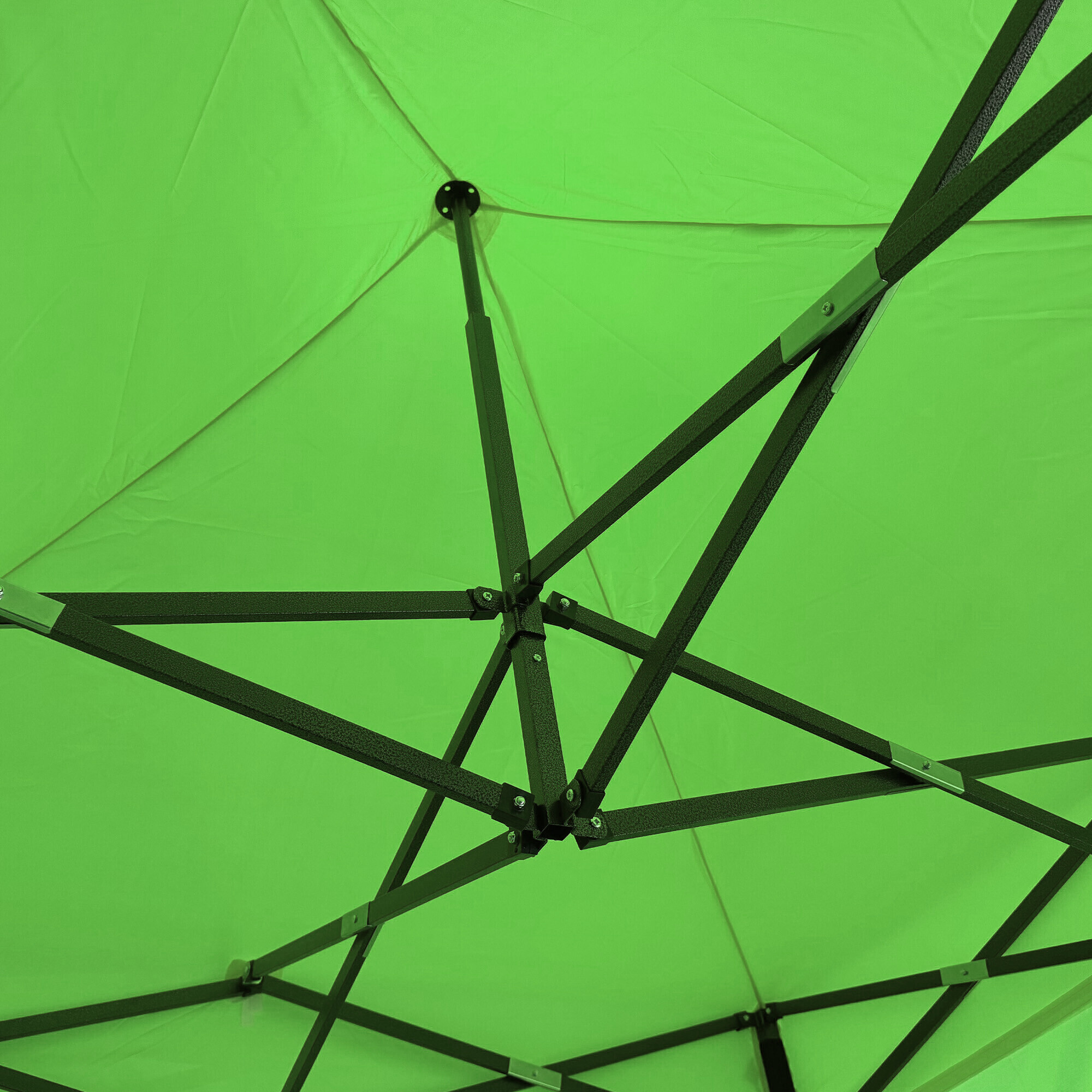 The roof is made of durable 420D PU Oxford material, which protects against the sun and light rain and can be easily maintained by hand washing. The steel scissor structure is strong and stable, with a powder-coated finish for corrosion resistance. Bolted connections ensure higher durability and longer lifespan. The height can be adjusted to three positions (213–290 cm).