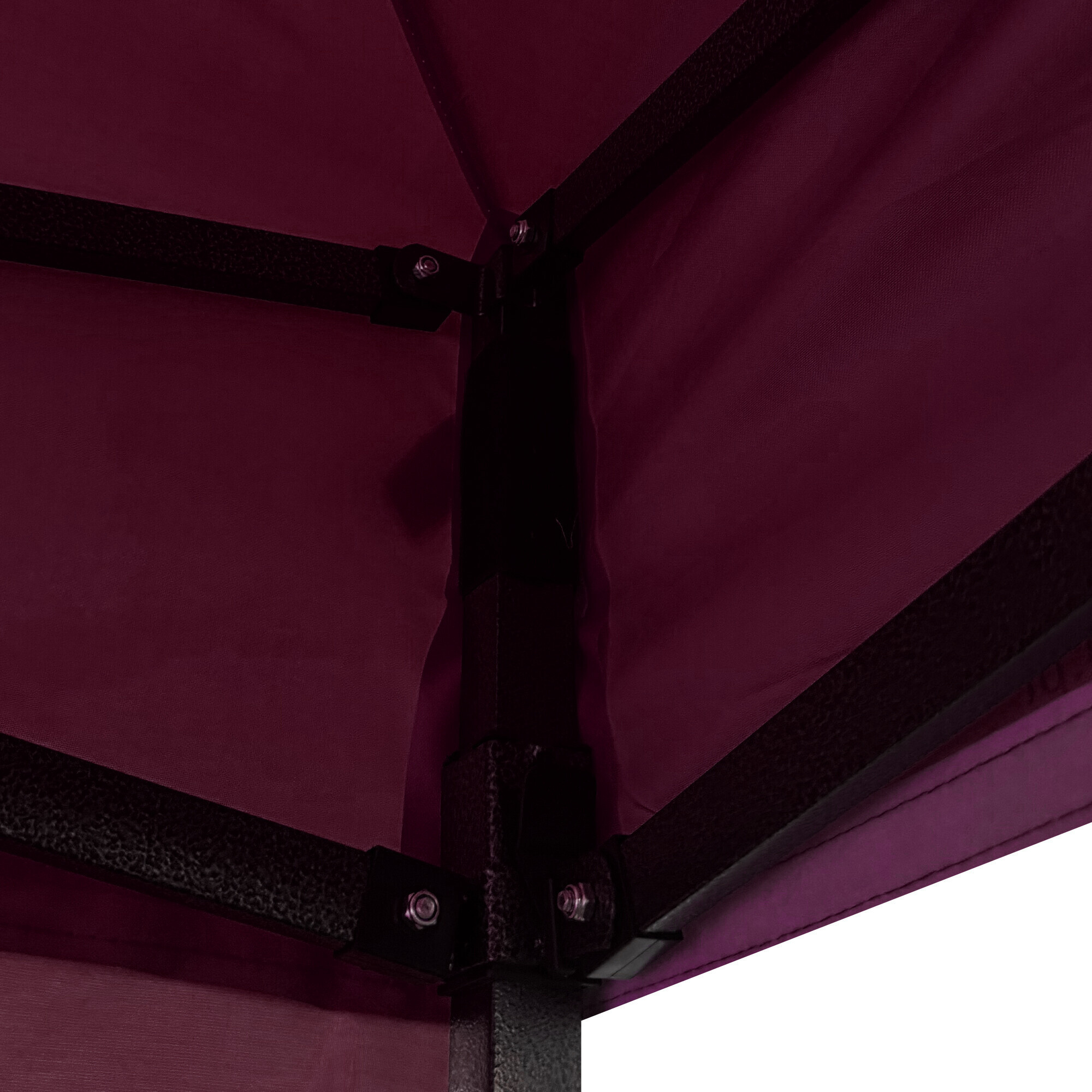 The roof is made of durable 420D PU Oxford material, which protects against sun and rain and can be easily maintained by hand washing. The construction consists of a steel scissor frame with a powder-coated finish. Screwed connections ensure stability while also facilitating potential maintenance. The height of the stand can be adjusted in three levels from 213 to 290 cm.