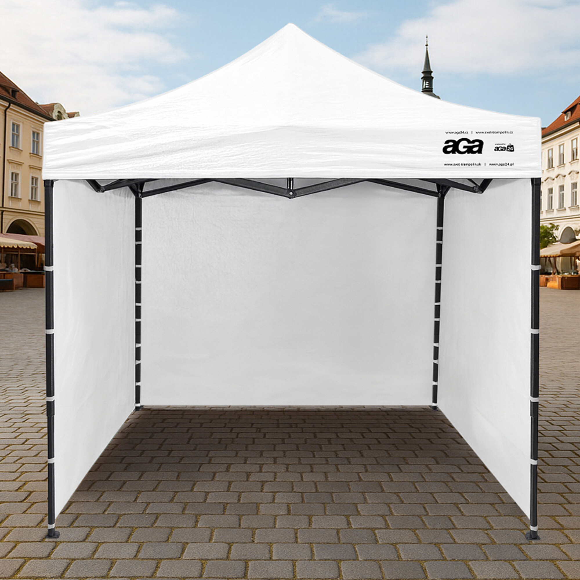 A 3×3 m sales booth with a sturdy scissor steel structure is one of the most sought-after models. Provides ample space for sales and presentation while being easy to transport and quickly assemble. You can use it for both outdoor and indoor events, from farmers' markets to trade fairs and exhibitions, as well as promotional events and corporate events.