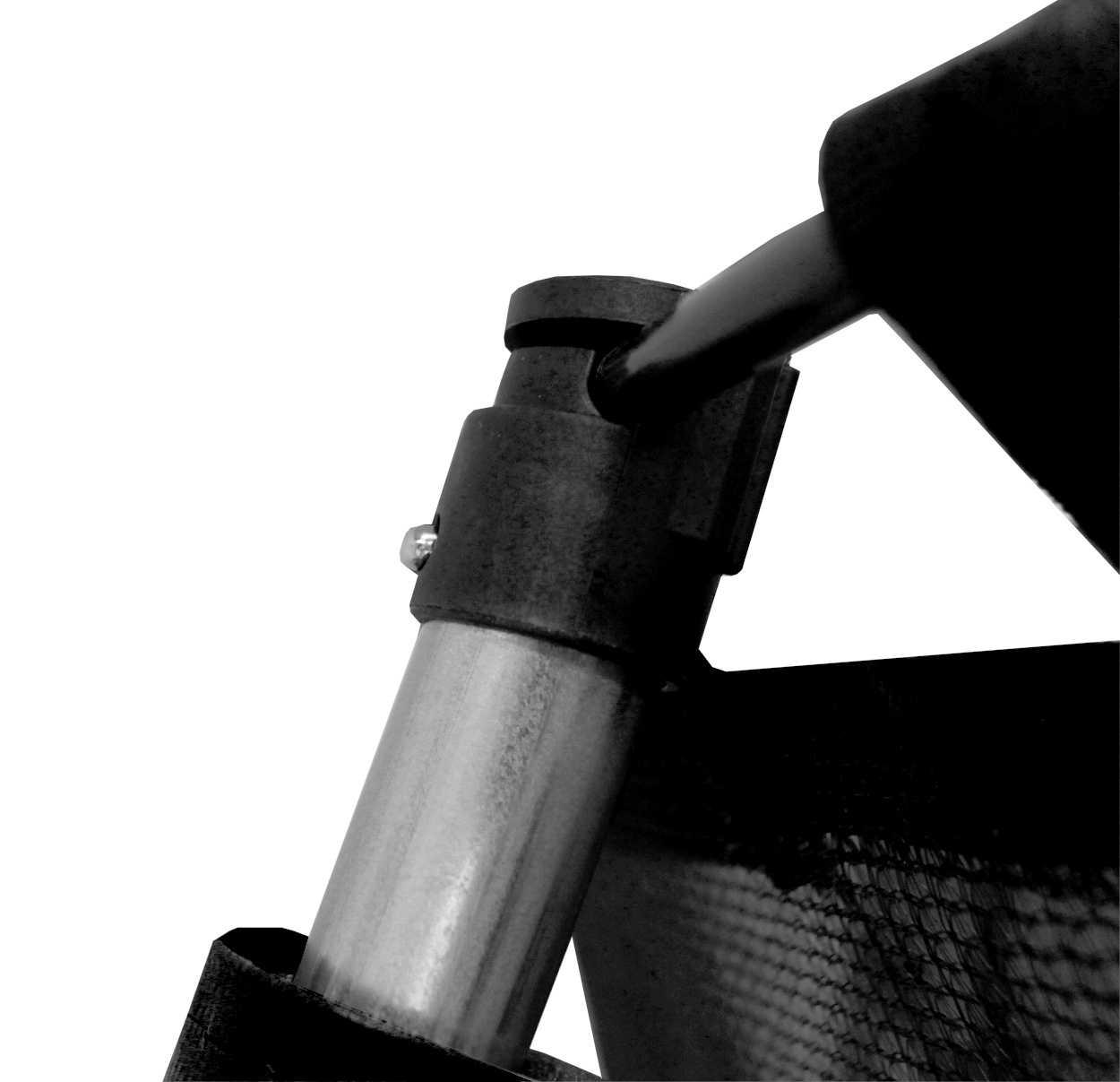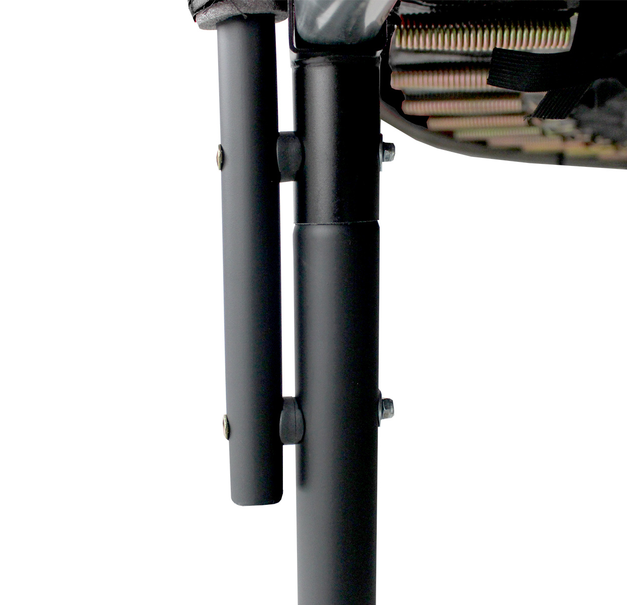 The circular Hi-Ten reinforced trampoline construction is made of high-quality galvanized steel with excellent corrosion resistance. The U-legs have a powder-coated finish.